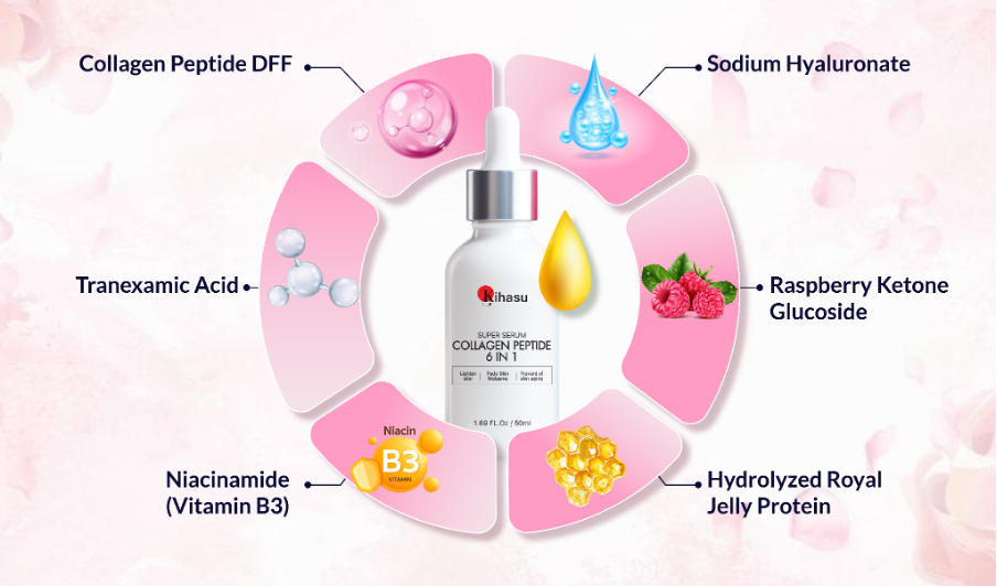 Đứng đầu danh sách là dòng serum ứng dụng công nghệ Collagen Peptide phân tử siêu nhỏ, tiêu biểu như Serum Kihasu Collagen Peptide 6in1. Sản phẩm được đánh giá cao nhờ khả năng hỗ trợ phục hồi độ đàn hồi bền vững và tối giản hóa quy trình chăm sóc da cho phụ nữ hiện đại.
