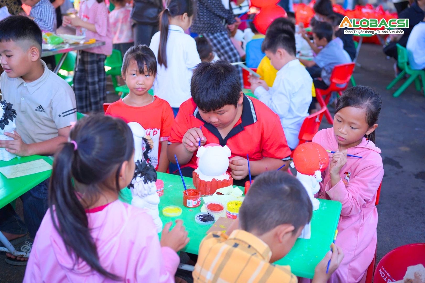 Song song với khám bệnh, chương trình còn mở một sân chơi cho các em nhỏ. Nhiều em chia sẻ, đây là lần đầu tiên được thử vẽ tượng, làm tranh cát, vui đến mức “không muốn về”.