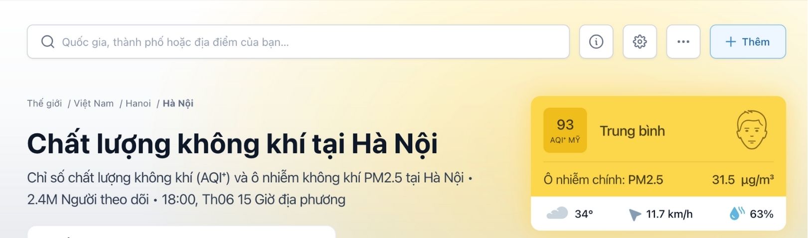 Chất lượng không khí tại Hà Nội đang ở mức đáng báo động, nhiều thời điểm chỉ số AQI vượt ngưỡng an toàn, đặc biệt là nồng độ bụi mịn PM2.5 cao gấp nhiều lần khuyến cáo của WHO. Các nguồn gây ô nhiễm chính gồm giao thông, xây dựng, công nghiệp và thói quen đốt rác tự phát.