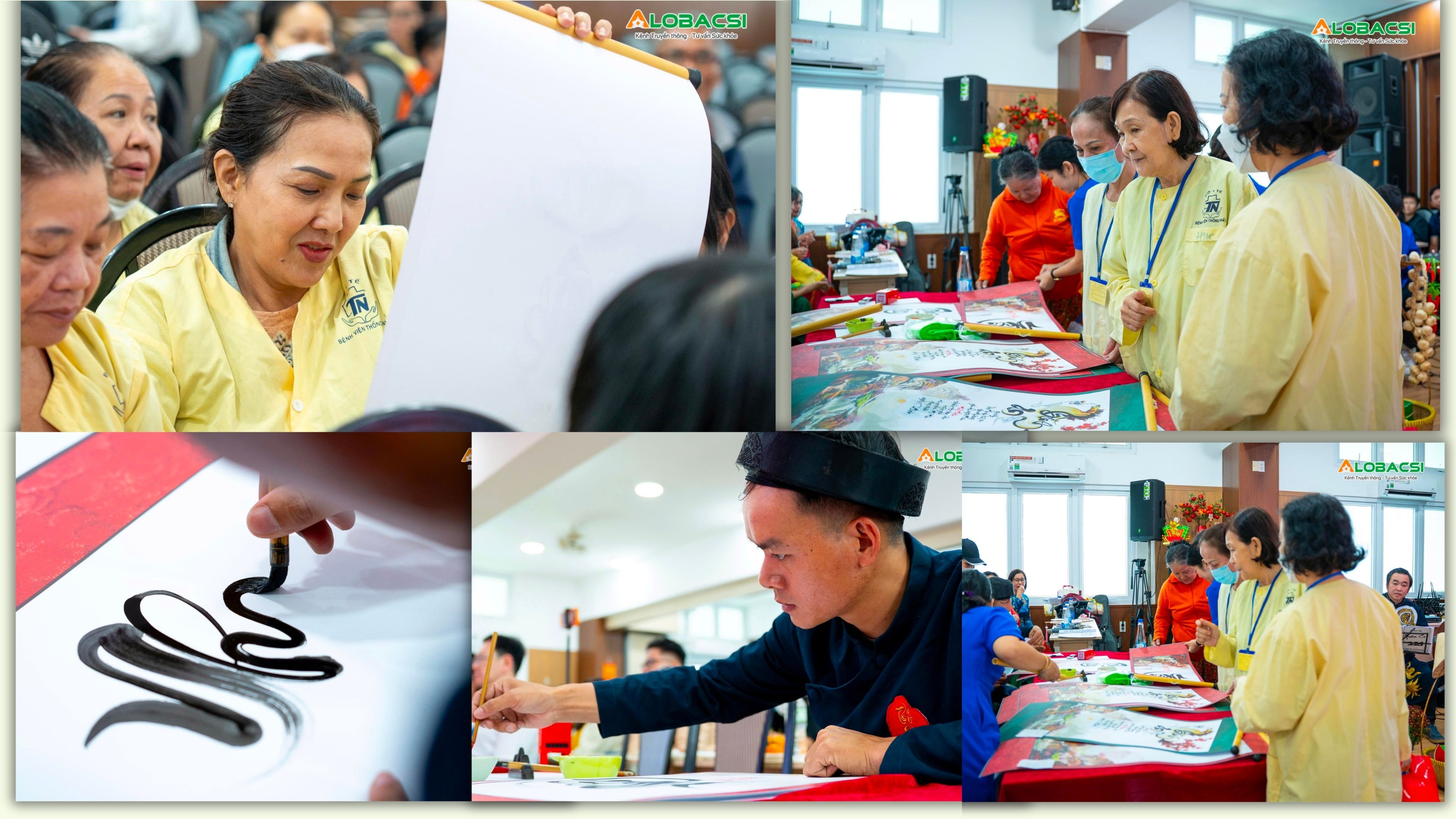 Không khí hội trường trở nên ấm áp hơn với các tiết mục văn nghệ do khách mời, bác sĩ và điều dưỡng biểu diễn. Những ca khúc quen thuộc vang lên giữa không gian bệnh viện, xen lẫn tiếng vỗ tay và nụ cười. Khu vực viết thư pháp cũng thu hút đông đảo người bệnh và thân nhân, những lời chúc đầu xuân được nắn nót trao tay như một cách gửi gắm hy vọng.