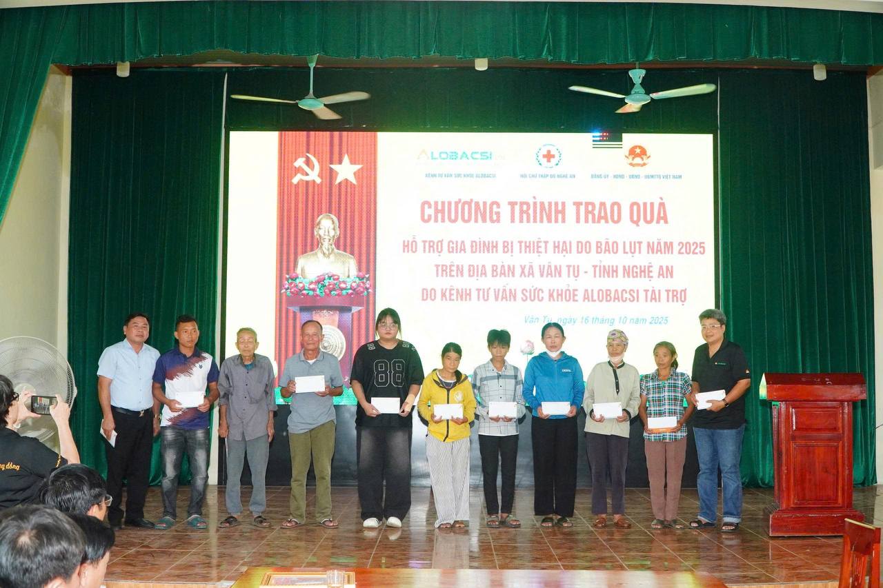 Tại đây, AloBacsi trao tặng 103 triệu đồng là tiền mặt cho 20 hộ thuộc diện hộ nghèo, có hoàn cảnh đặc biệt khó khăn và bị thiệt hại nặng do cơn bão số 10.