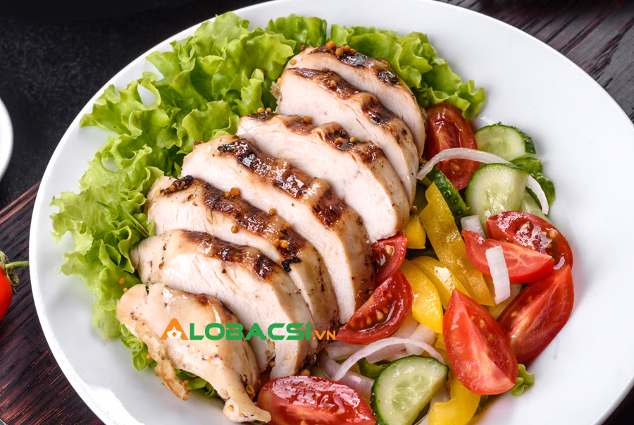 Một khẩu phần ức gà khoảng 100-150g/bữa là hợp lý, kết hợp thêm thực phẩm khác để cân bằng dinh dưỡng.