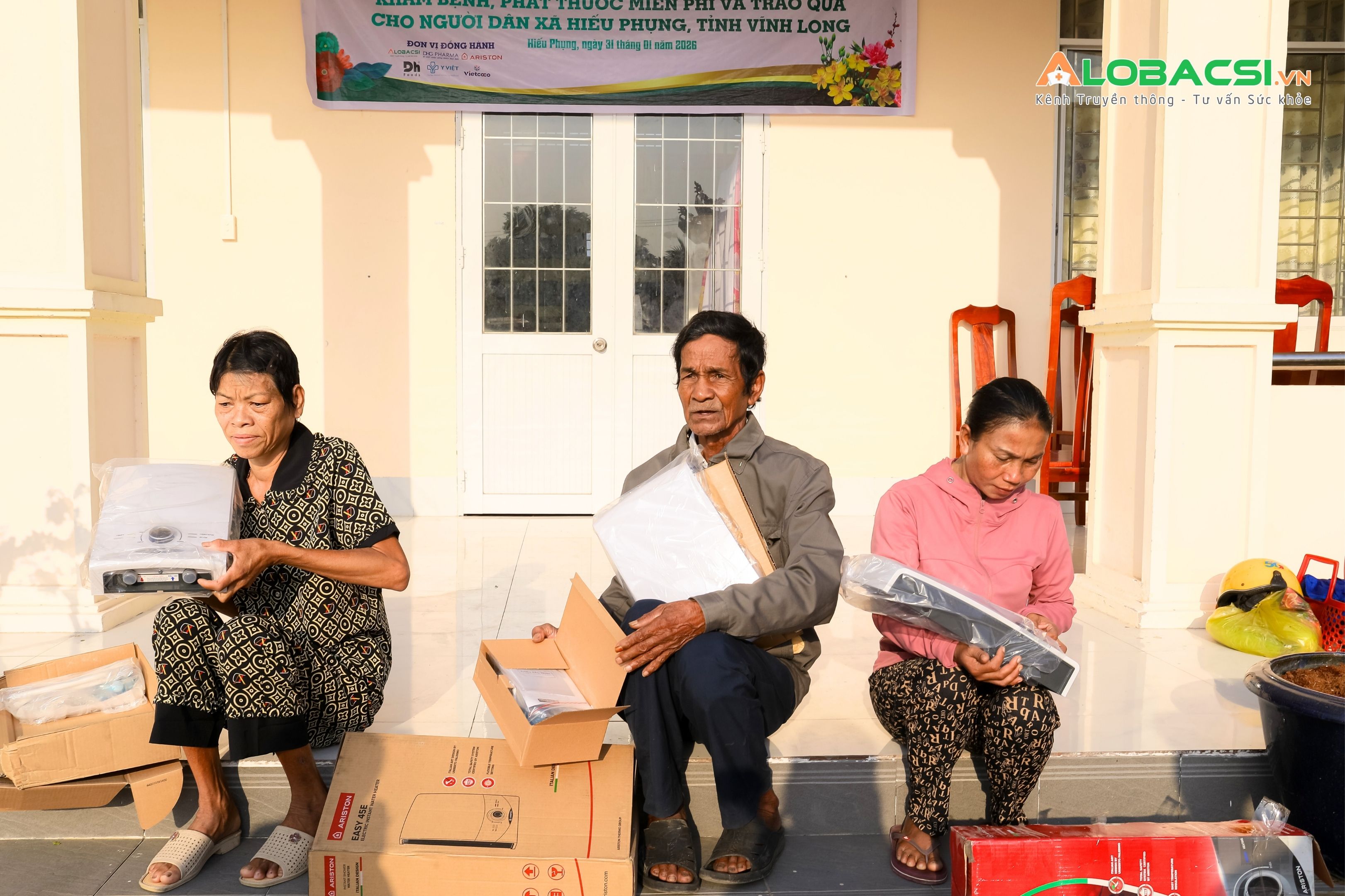 Trong chương trình khám bệnh, phát thuốc và trao quà cho gần 300 người cao tuổi có hoàn cảnh khó khăn tại xã Hiếu Phụng (Vĩnh Long) do AloBacsi đồng hành cùng Bệnh viện Thống Nhất và Bệnh viện Răng Hàm Mặt Trung ương TPHCM tổ chức, Ariston đã trao tặng 10 máy nước nóng cho 10 hộ gia đình có hoàn cảnh đặc biệt khó khăn trên địa bàn xã.
