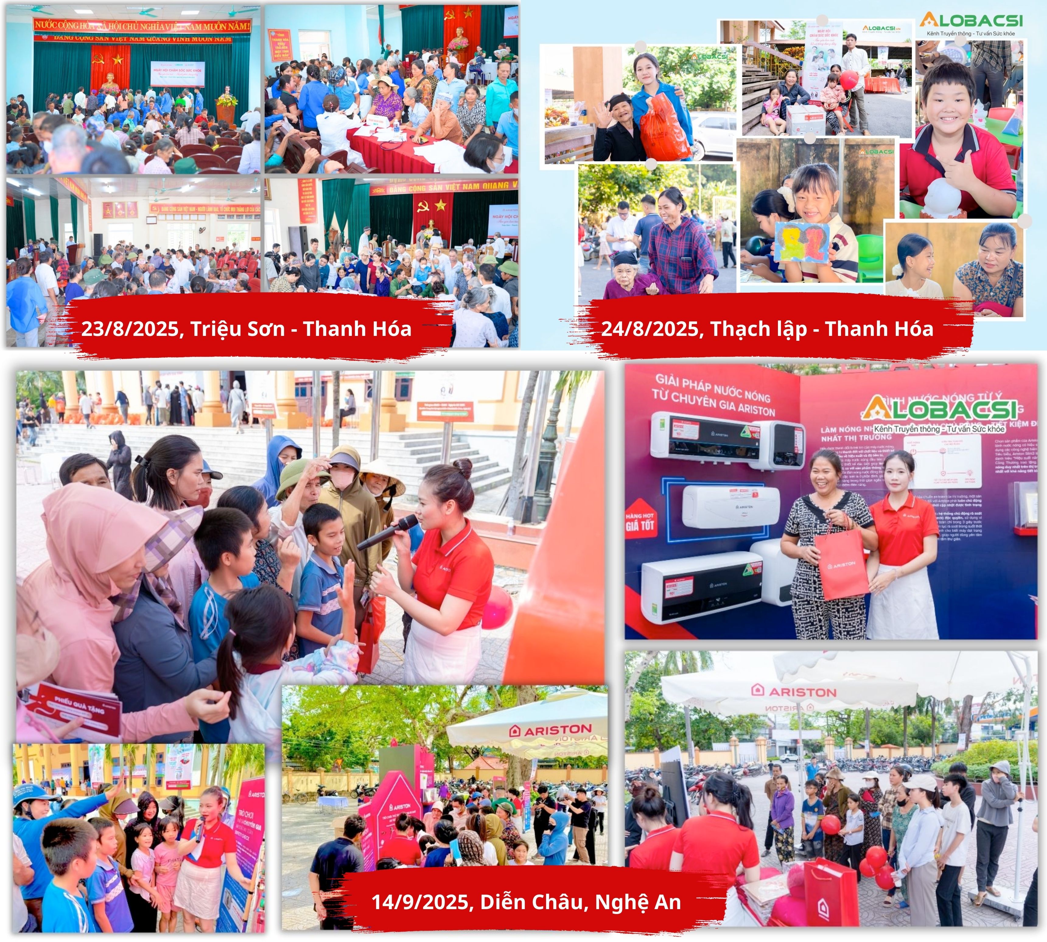 Trong năm 2025, Ariston đã cùng AloBacsi triển khai 3 chương trình lớn tại Thanh Hóa và Nghệ An, với những ngày hội chăm sóc sức khỏe, khám bệnh, phát thuốc miễn phí, kết hợp hoạt động gia đình và sân chơi cho trẻ em tại các địa phương còn nhiều khó khăn.