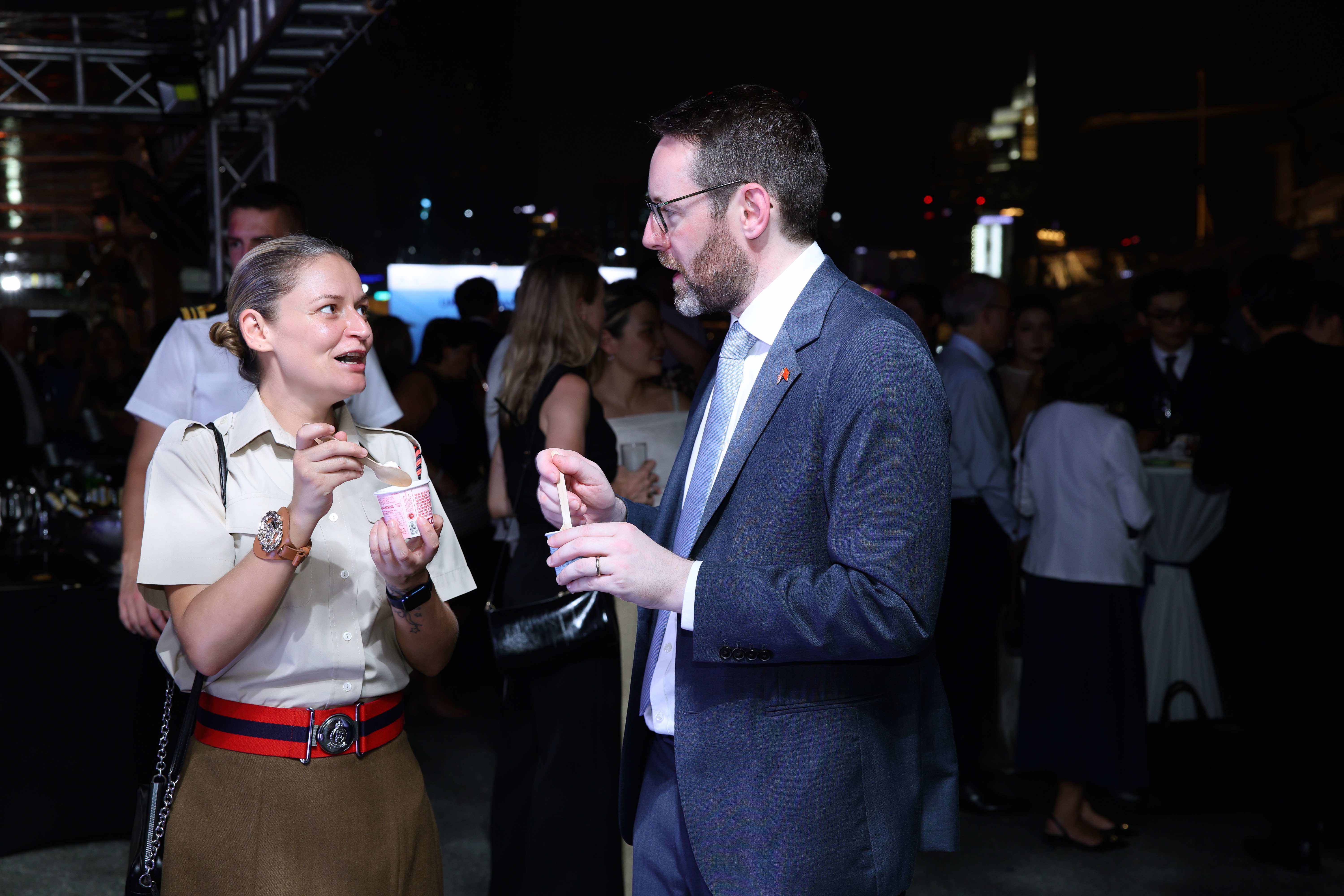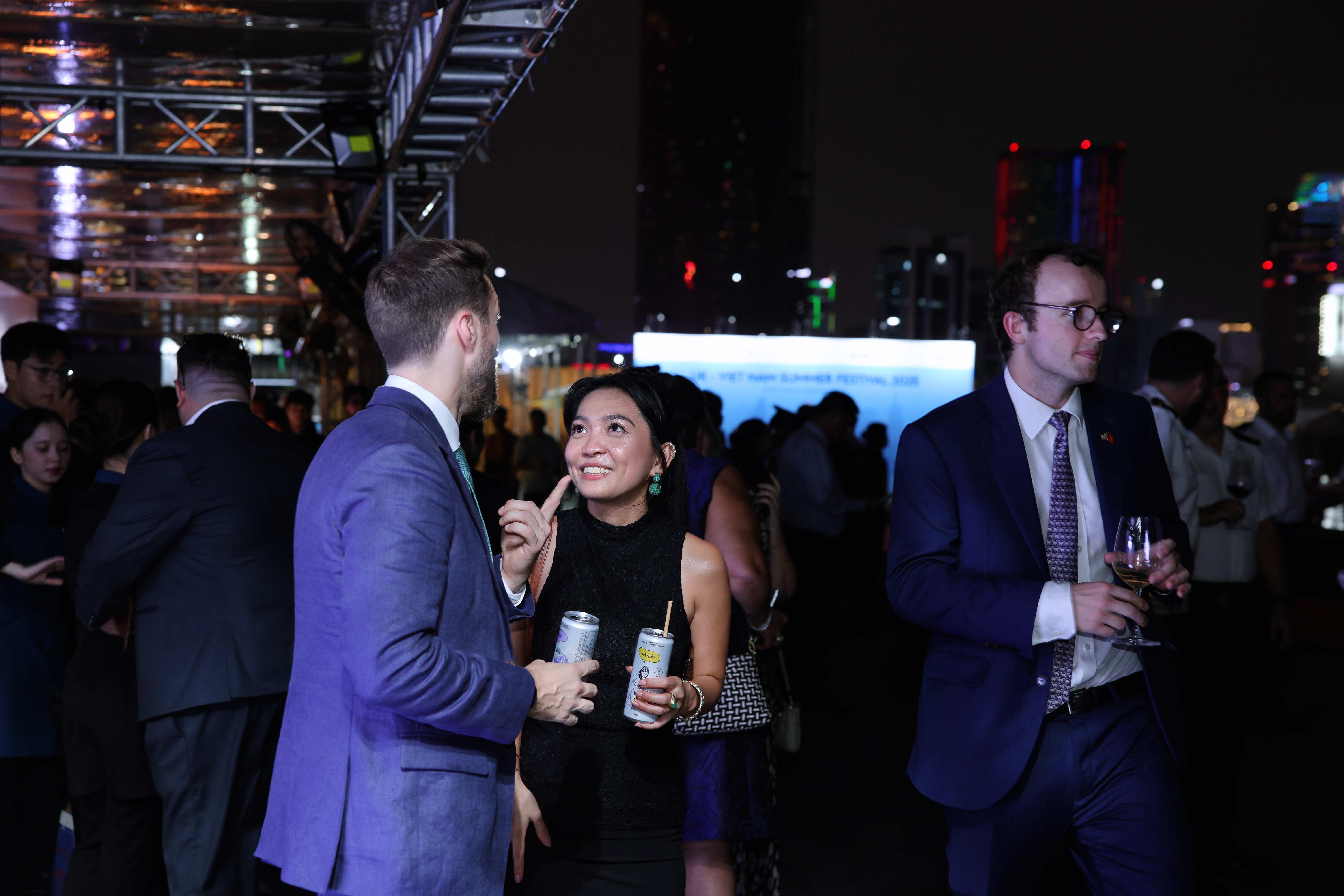 Trong không gian sang trọng của sự kiện đón tàu Hải quân Hoàng gia Anh tại TPHCM, nhiều khách quốc tế bày tỏ sự ấn tượng và thích thú khi lần đầu trải nghiệm những ly kem, sữa chua hay trà kombucha mát lành từ Vinamilk.