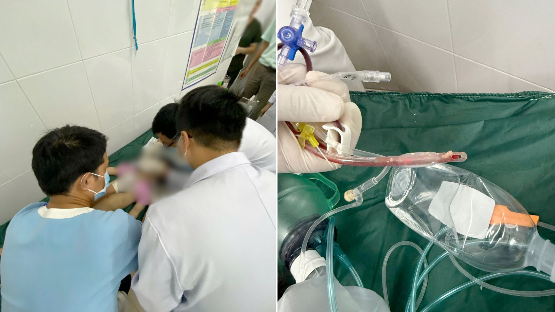 Theo thông tin từ ekip cấp cứu, bé bị sặc thức ăn dẫn đến hôn mê, ngưng thở. Trước khi được gọi cấp cứu 115, trẻ đã được đưa qua 2 trạm y tế phường. Khi nhân viên y tế tiếp cận, bé đã trong tình trạng ngưng tim - ngưng thở, đồng tử giãn, không còn phản xạ. Dù được hồi sinh tim phổi tích cực suốt hơn 70 phút, trẻ vẫn không qua khỏi.