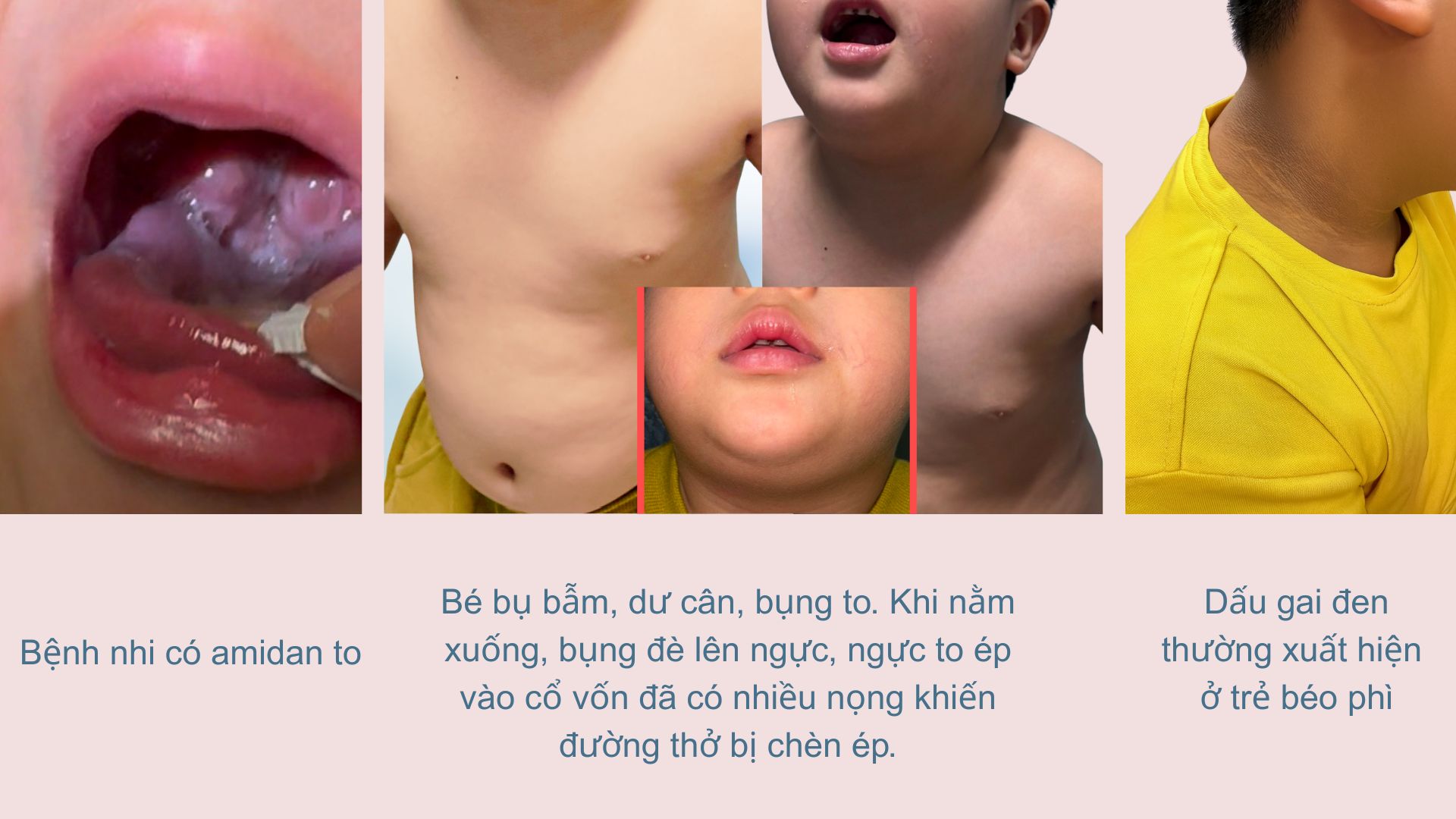 Cơ chế sinh bệnh chủ yếu do chèn ép đường thở từ bên ngoài (mỡ bụng, ngực, cổ) và bên trong (VA, amidan). Khi đường thở bị ép, trẻ buộc phải há miệng để lấy hơi, ngủ không sâu, giật mình liên tục, não thiếu oxy kéo dài có thể ảnh hưởng hệ thần kinh trung ương, tim mạch, rối loạn nhịp tim, thậm chí đột quỵ nếu để diễn tiến lâu dài.