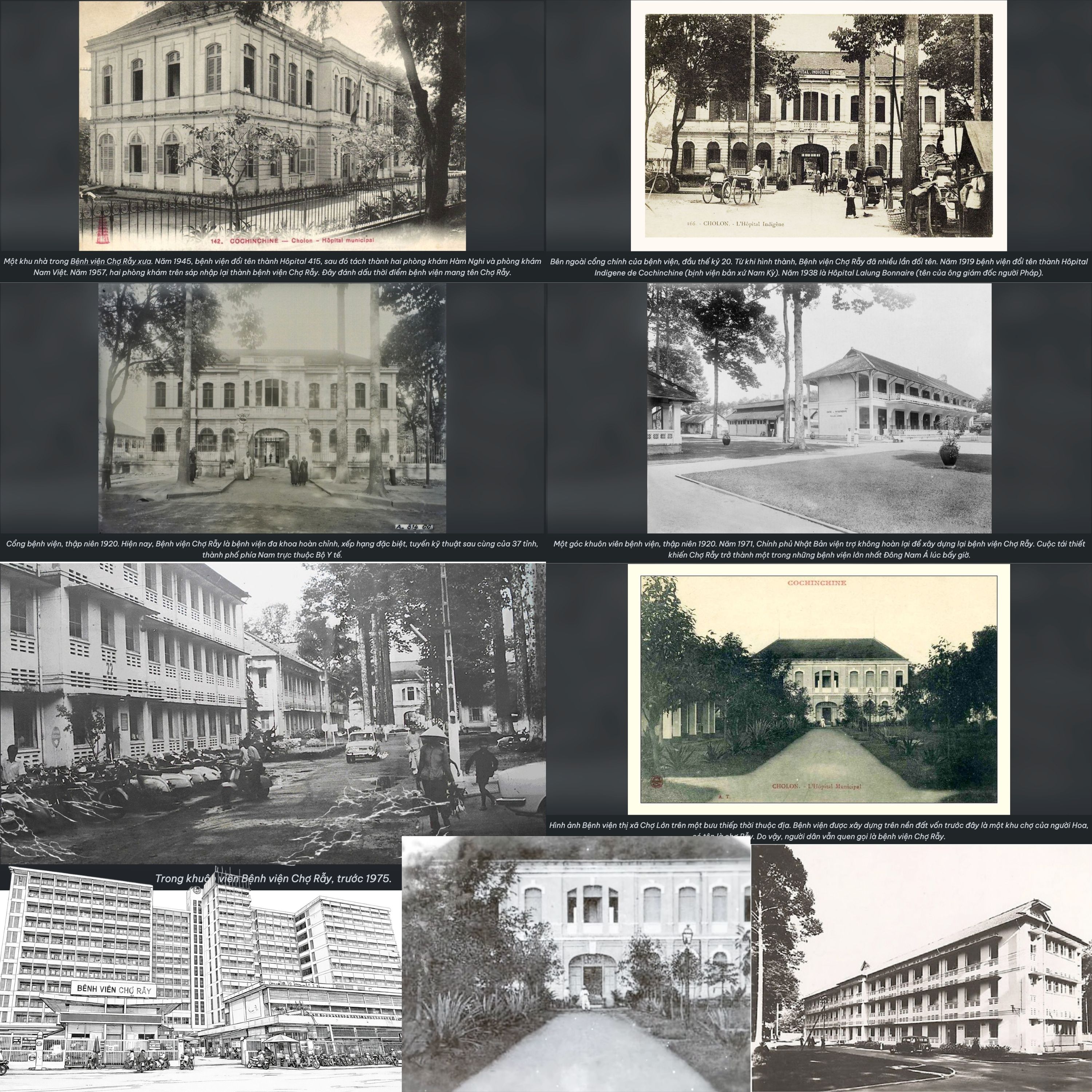 Được thành lập năm 1900 với tên gọi Hospital Municipal de Cholon, bệnh viện là một trong những cơ sở y tế đầu tiên do người Pháp xây dựng tại Việt Nam. Công trình được dựng trên nền một khu chợ của cộng đồng người Hoa mang tên Chợ Rẫy, với kiến trúc kiểu Pháp đặc trưng - đặt những viên gạch đầu tiên cho một trung tâm y tế quy mô hàng đầu Nam Kỳ đầu thế kỷ XX. Trải qua nhiều lần đổi tên, đến năm 1957, bệnh viện chính thức mang tên Chợ Rẫy - cái tên gắn với ký ức của nhiều thế hệ người dân miền Nam.