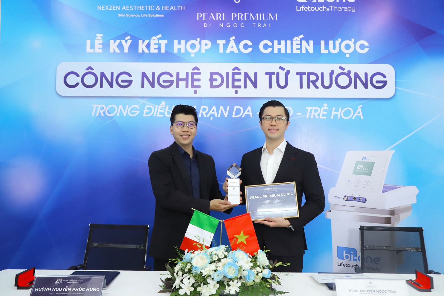 TPHCM - Vừa qua, Pearl Premium Clinic đã tiên phong giới thiệu đến Việt Nam thiết bị Bi-one® LifeTouch Therapy ứng dụng công nghệ Biodermogenesi® (Ý) thông qua hợp tác với đối tác châu Âu. Đây không chỉ là một bước ngoặt trong lĩnh vực thẩm mỹ tái tạo da mà còn thể hiện tâm huyết của đội ngũ bác sĩ tại Pearl Premium Clinic - những người luôn nỗ lực mang đến các công nghệ hiệu quả cao nhất đồng thời mang lại trải nghiệm êm ái, không đau và không cần nghỉ dưỡng cho khách hàng.