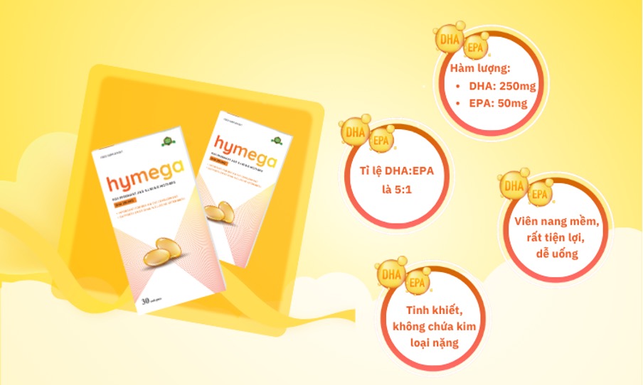 DHA EU Hymega cung cấp hàm lượng 250mg DHA tinh khiết và 50mg EPA mỗi viên. Tỉ lệ DHA:EPA trong Hymega là 5:1 - tỉ lệ tối ưu cho sức khỏe theo công bố của WHO. Trong đó, nguồn DHA được chiết xuất hoàn toàn từ các loại cá giàu DHA bằng công nghệ tiên tiến, đảm bảo không chứa thủy ngân, kim loại nặng hay các chất độc hại khác.