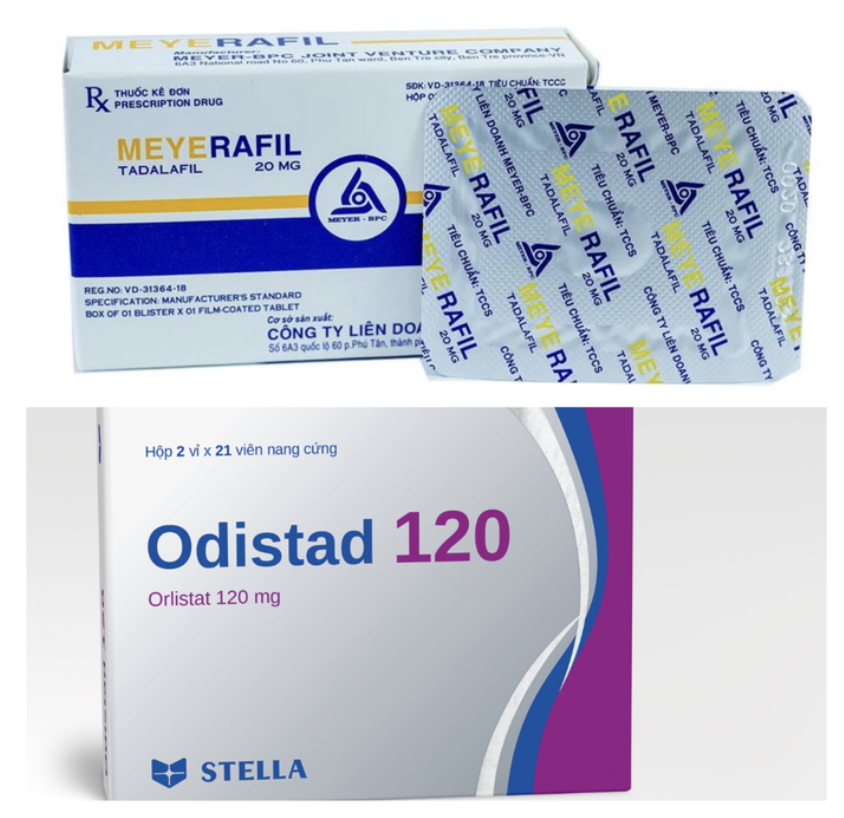 Cụ thể, thuốc Tadalafil 20mg (SĐK 893110457024) do Công ty liên doanh Meyer-BPC (Bến Tre) sản xuất và đăng ký, là loại thuốc phổ biến trong điều trị rối loạn cương dương. Odistad 120 (Orlistat 120mg), thuốc điều trị béo phì, do Công ty Stellapharm đăng ký, sản xuất tại chi nhánh ở Bình Dương. Thuốc Vacobufen 400 (Ibuprofen 400mg), chuyên giảm đau, hạ sốt, thuộc Công ty cổ phần Dược Vacopharm (Long An).