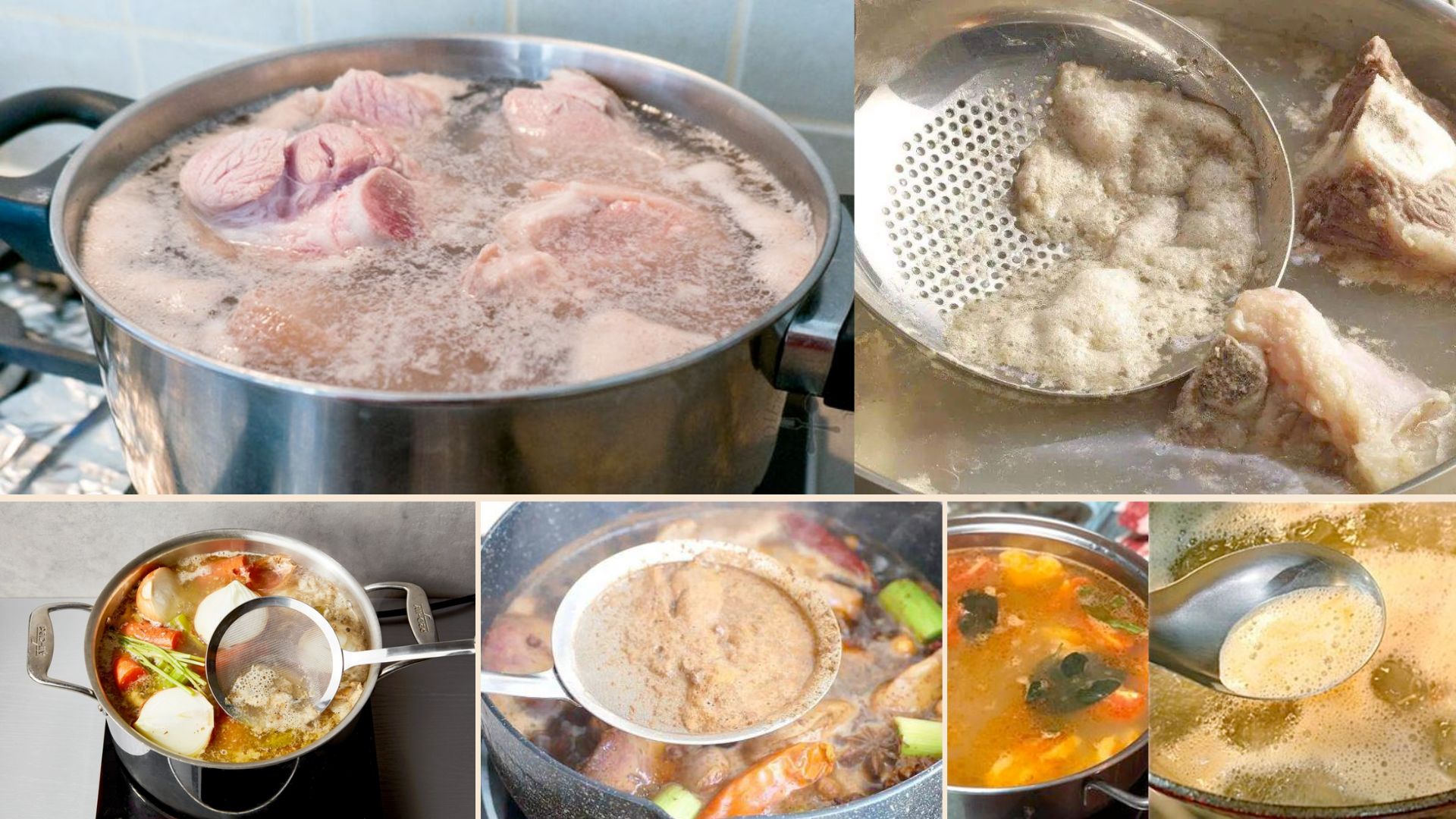 Chính vì vậy, các đầu bếp chuyên nghiệp thường trụng sơ thịt hoặc xương trong nước sôi trước khi nấu nước dùng, nhằm loại bỏ phần máu và dịch bạch huyết, đây là bí quyết giúp nước canh, nước lẩu trong và thơm hơn. Nếu vẫn thấy bọt nổi trong quá trình nấu, hớt bỏ nhẹ tay là cách đơn giản nhất để giữ nồi nước sạch, vị thanh và an toàn hơn.