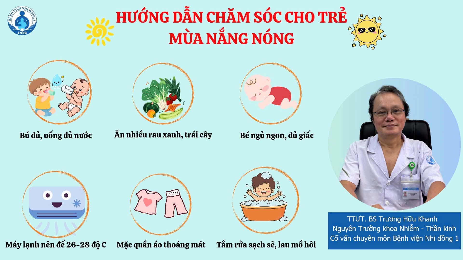 Theo BS Trương Hữu Khanh - Nguyên Trưởng khoa Nhiễm - Thần kinh, Cố vấn chuyên môn Bệnh viện Nhi đồng 1, vào mùa nắng, trẻ thường ăn uống kém hơn do cảm giác nóng bức, chỉ thích các món mát, nhiều nước. Vì vậy, việc chăm sóc trẻ trong giai đoạn này đòi hỏi sự kiên trì và linh hoạt từ phía phụ huynh.