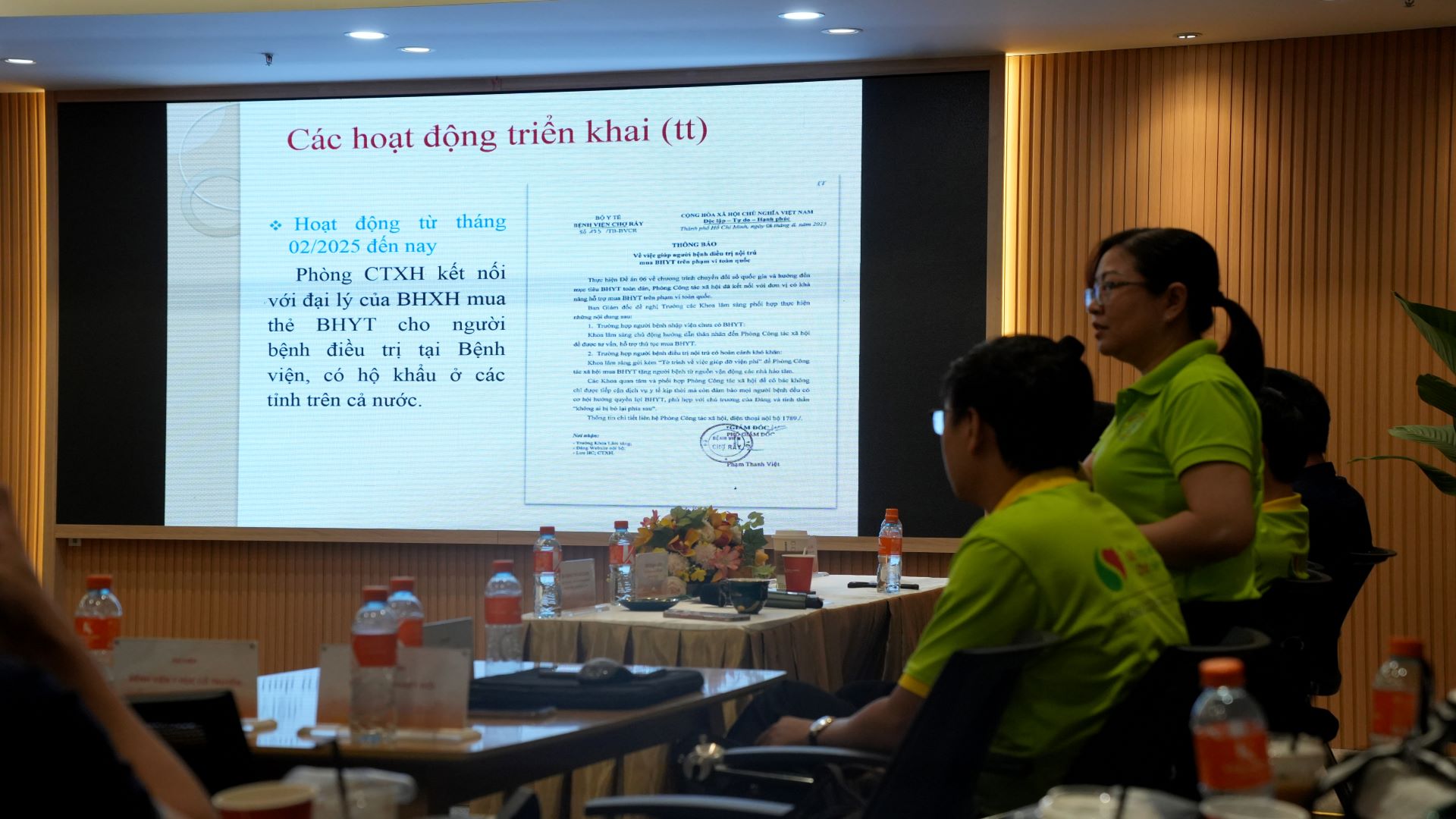 Chị Phạm Thị Thanh Lan - chuyên viên phòng CTXH, cho biết phòng luôn nỗ lực tư vấn và hỗ trợ người bệnh mua BHYT, đồng hành cùng bệnh nhân trong quá trình điều trị, hướng đến mục tiêu BHYT toàn dân. Từ tháng 2/2025, khi thẻ CCCD được tích hợp với thẻ BHYT, phòng CTXH đã chủ động liên hệ mua BHYT cho bệnh nhân, giúp họ tiếp cận chính sách BHYT và giảm chi phí điều trị.