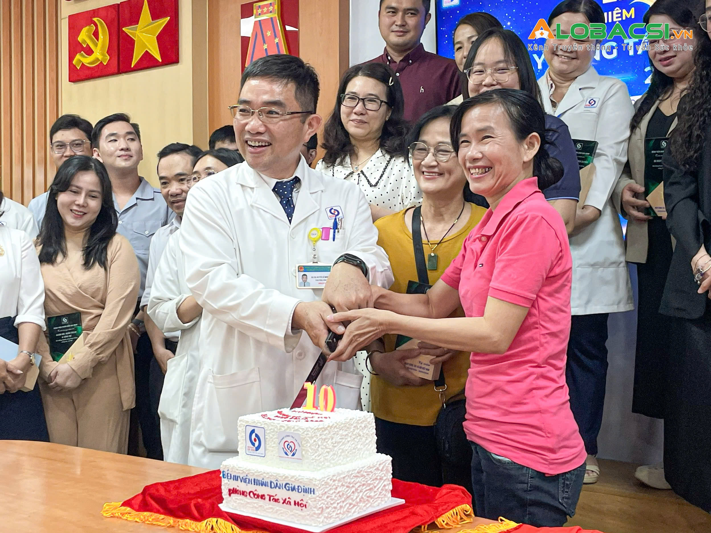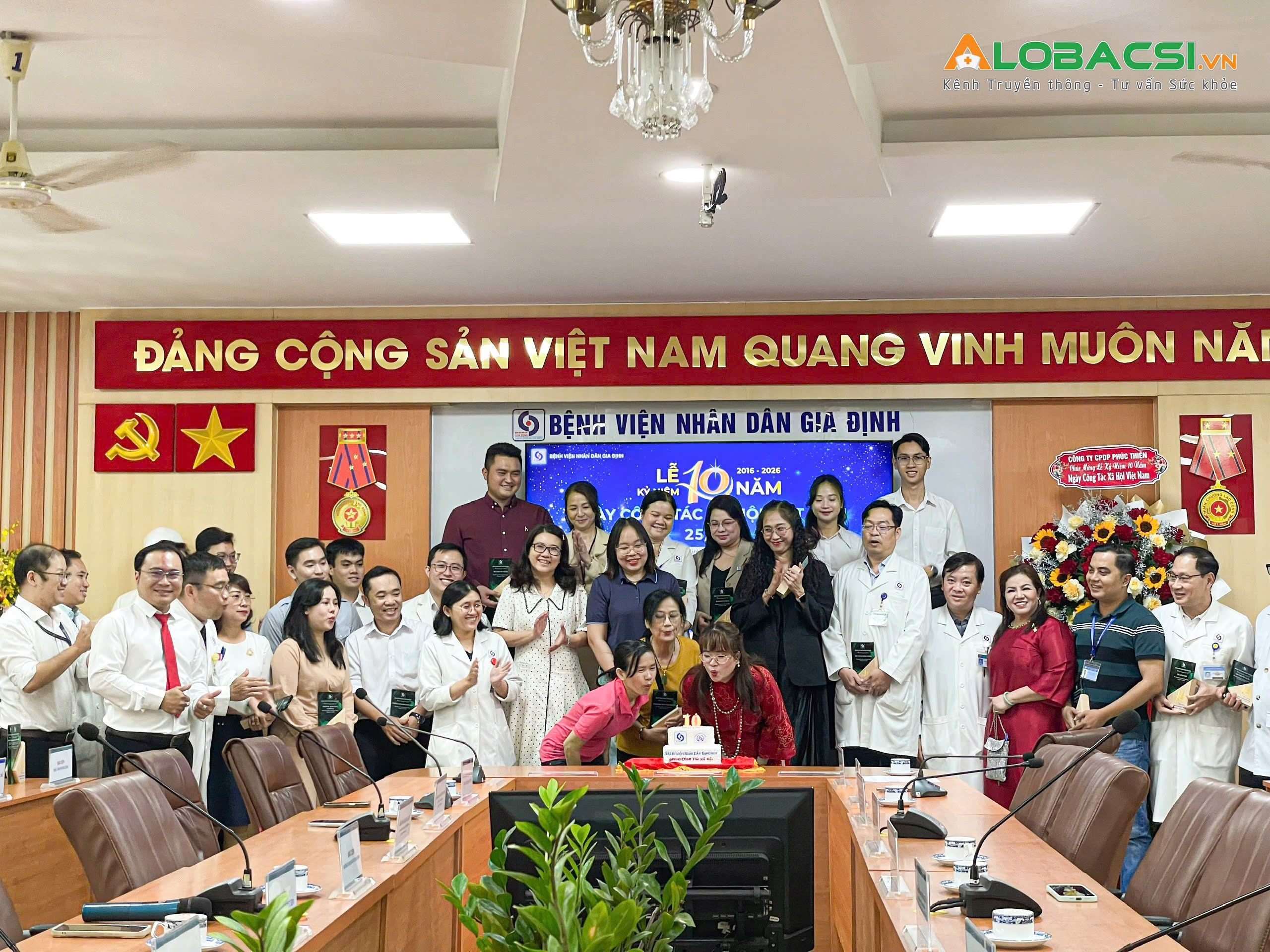Lễ kỷ niệm khép lại trong không khí ấm áp khi toàn thể y bác sĩ, nhân viên và các khách mời cùng nhau thổi nến, cắt chiếc bánh kem chúc mừng sinh nhật 10 tuổi của ngành Công tác xã hội Việt Nam và Phòng CTXH Bệnh viện Nhân dân Gia Định.