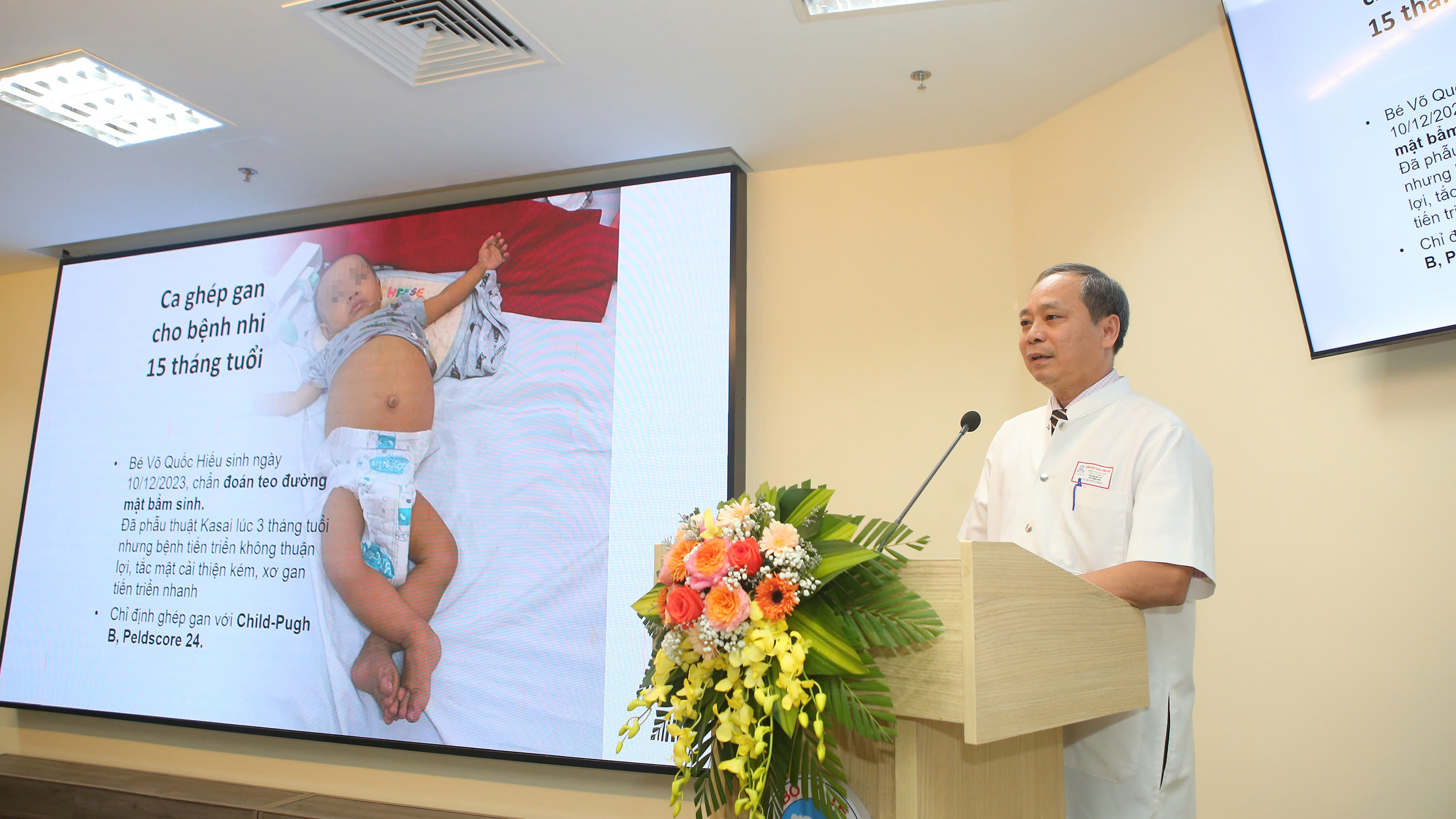 Cháu H., quê tại thị xã Ba Đồn (Quảng Bình), được chẩn đoán teo đường mật bẩm sinh - một bệnh lý hiếm và nguy hiểm ở trẻ sơ sinh. Dù đã được mổ Kasai khi mới 3 tháng tuổi, chức năng gan của bé vẫn tiếp tục suy giảm. Với chỉ số Child-Pugh B và PELD 24 điểm, ghép gan trở thành phương án duy nhất để duy trì sự sống.