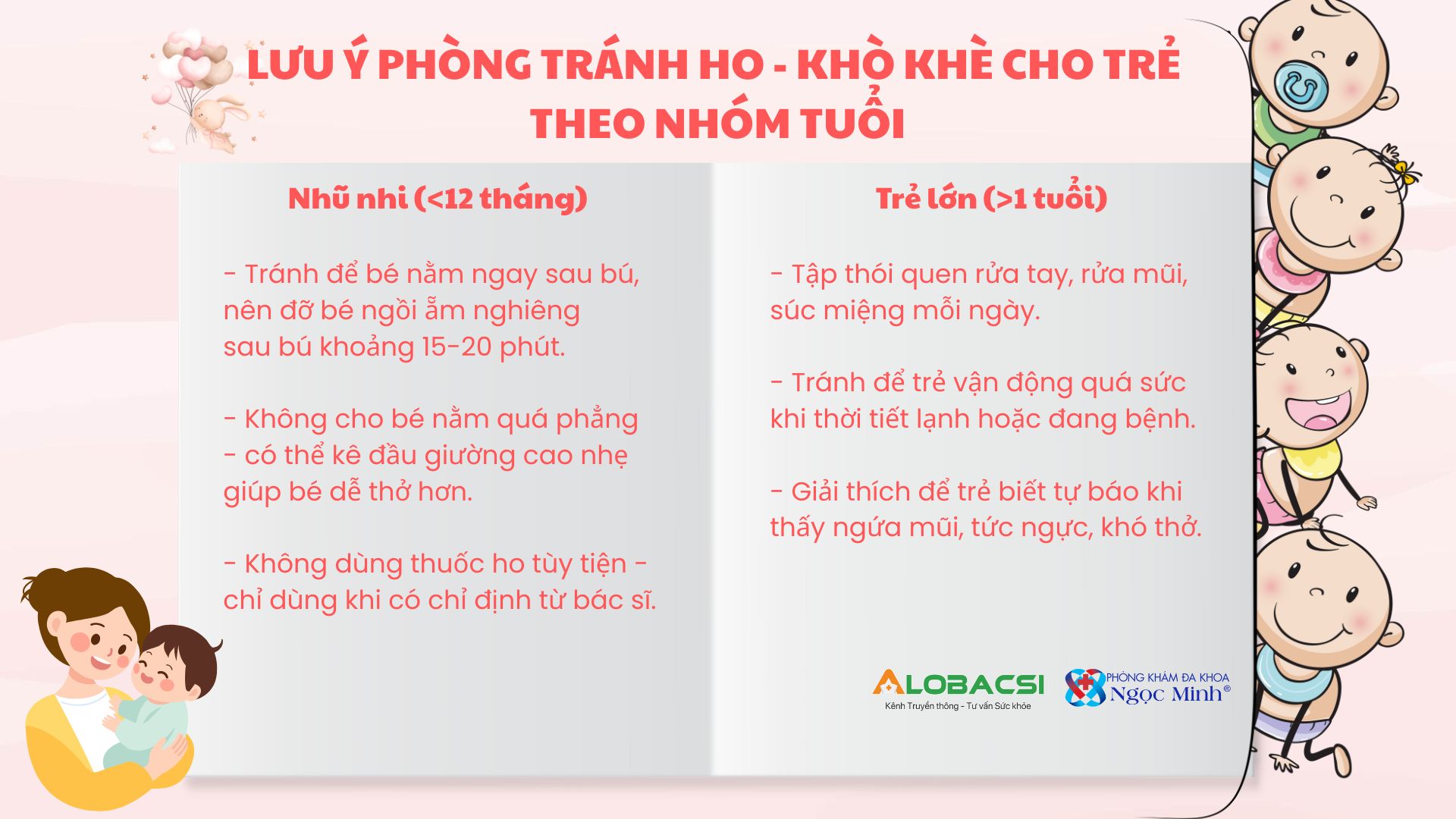 Tóm lại, “Phòng bệnh hơn chữa bệnh”, việc phòng ngừa ho và khò khè đêm không chỉ giúp bé khỏe mạnh, ngủ ngon mà còn giảm bớt lo âu cho ba mẹ và tránh dùng thuốc không cần thiết. Mỗi gia đình chỉ cần duy trì vài thói quen tốt mỗi ngày, kết hợp theo dõi sát biểu hiện của trẻ, là đã có thể chủ động kiểm soát nhiều tình huống.