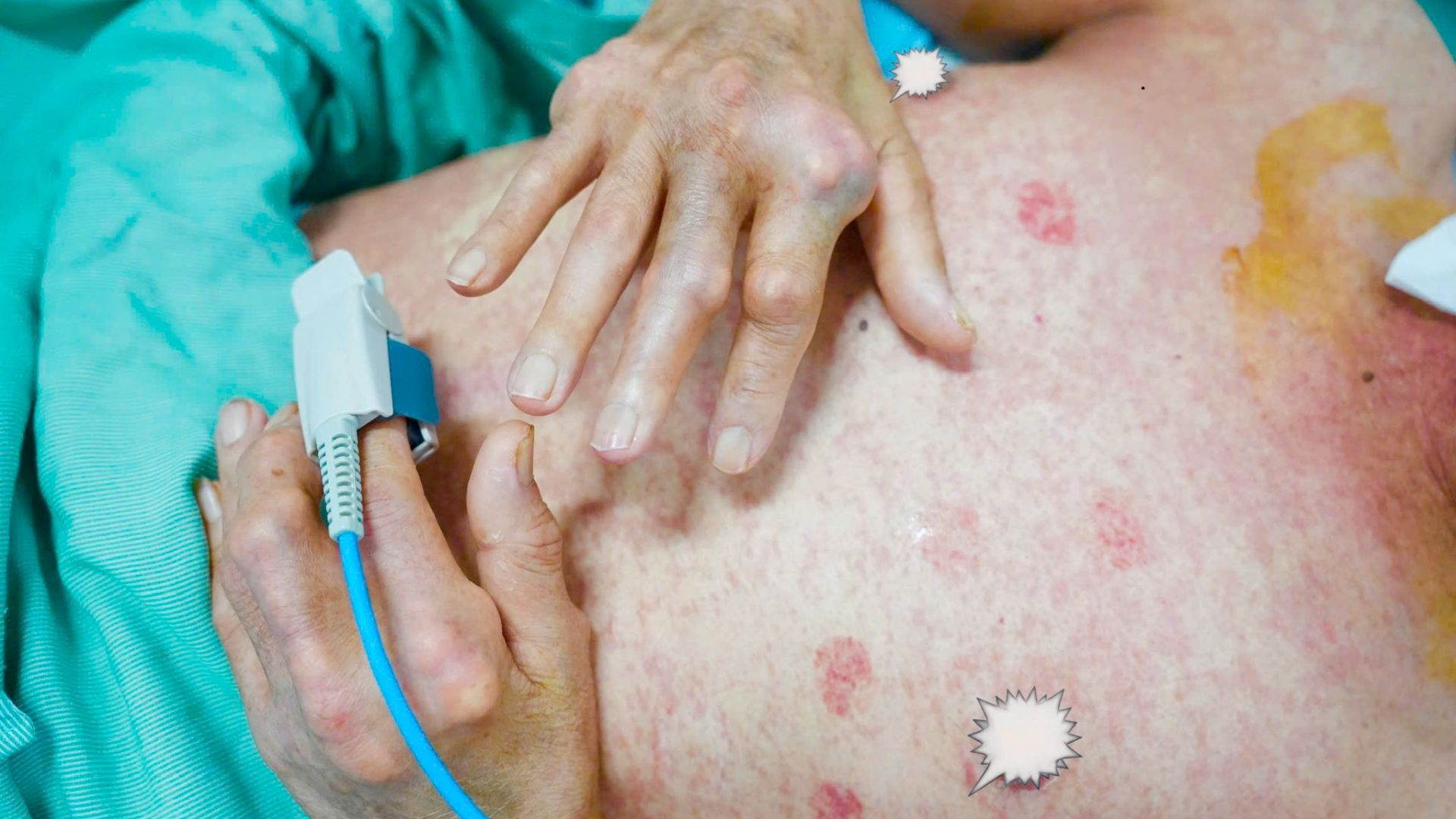 Bệnh nhân là ông N.D.T. (53 tuổi, ngụ TP Hạ Long, Quảng Ninh) nhập viện trong tình trạng ban đỏ lan toàn thân, nốt phỏng nước ở bụng, loét hai môi, phù mi mắt và loét cạnh hậu môn - sinh dục. Ngoài ra, bệnh nhân có hạt tophy ở tay chân do gout lâu năm. Đáng chú ý, bệnh nhân có tiền sử đái tháo đường, suy tuyến thượng thận, vừa điều trị sởi và có tiền sử dị ứng thuốc không rõ loại. Trước đó, ông T. tự ý sử dụng thuốc nam dạng bột mua trên mạng.