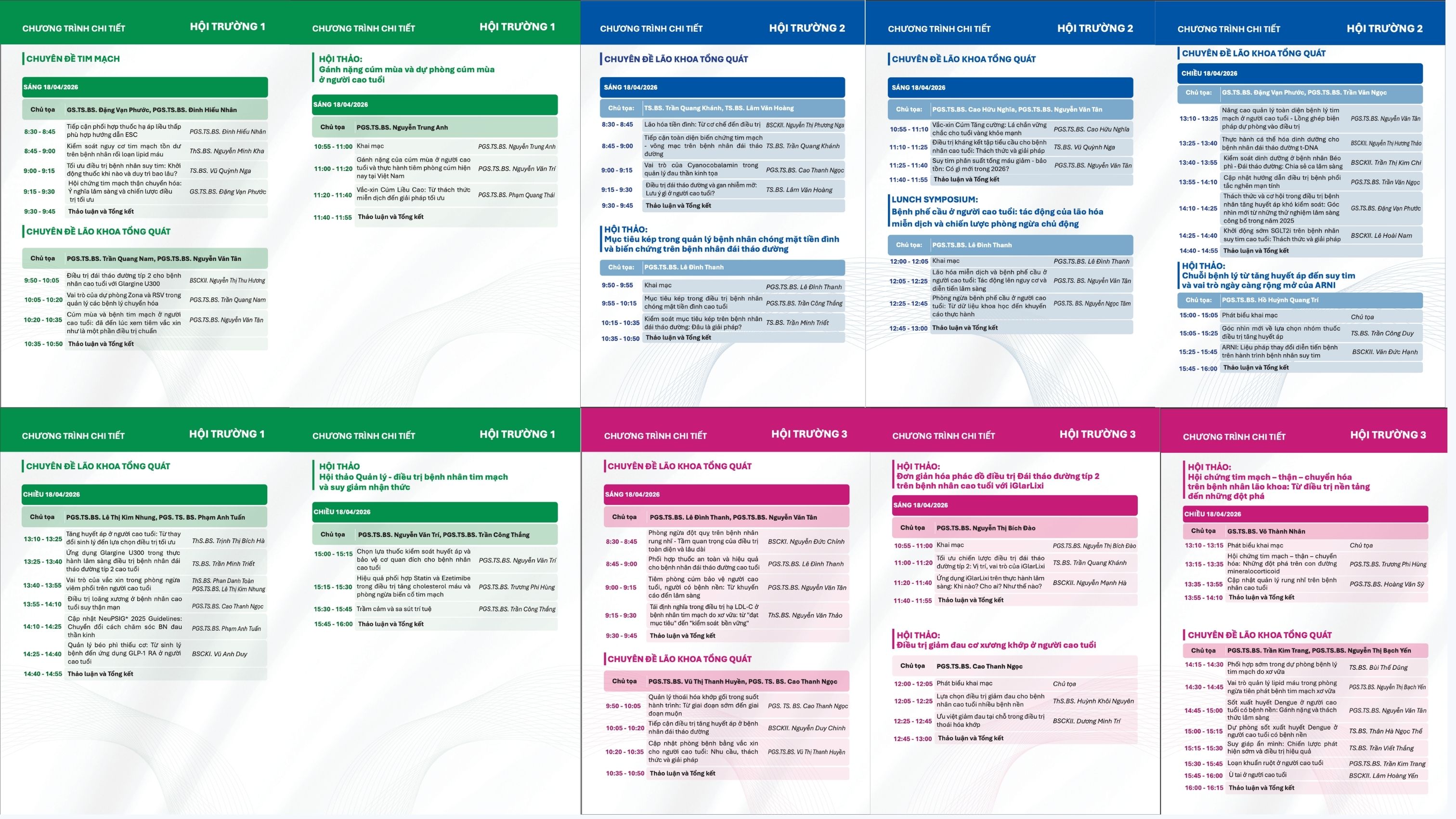 Bên cạnh đó, hội nghị còn có 1 phiên tiếng Anh với 4 báo cáo, 10 hội thảo chuyên đề và 2 phiên vệ tinh (Lunch Symposium), tập trung vào các chủ đề thực tiễn như dự phòng cúm, bệnh phế cầu, dinh dưỡng đái tháo đường, tối ưu điều trị suy tim, giảm đau cơ xương khớp và quản lý hội chứng tim mạch - thận - chuyển hóa.