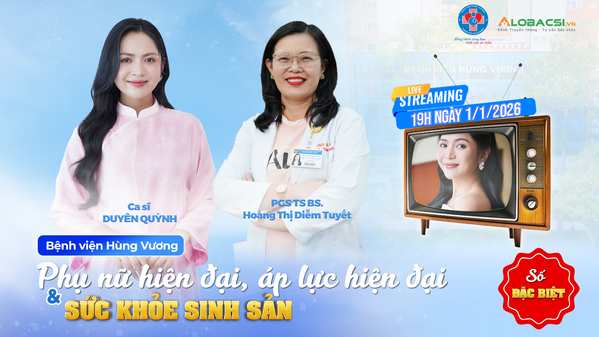 Từ tinh thần đó, tập đặc biệt của Radar Sản phụ khoa sẽ lên sóng với chủ đề “Phụ nữ hiện đại, áp lực hiện đại và sức khỏe sinh sản”, vào lúc 19h, ngày 1/1/2026 - một khung giờ khác với thường lệ - trên fanpage Bệnh viện Hùng Vương và hệ thống đa kênh của AloBacsi (YouTube/ website/ fanpage).