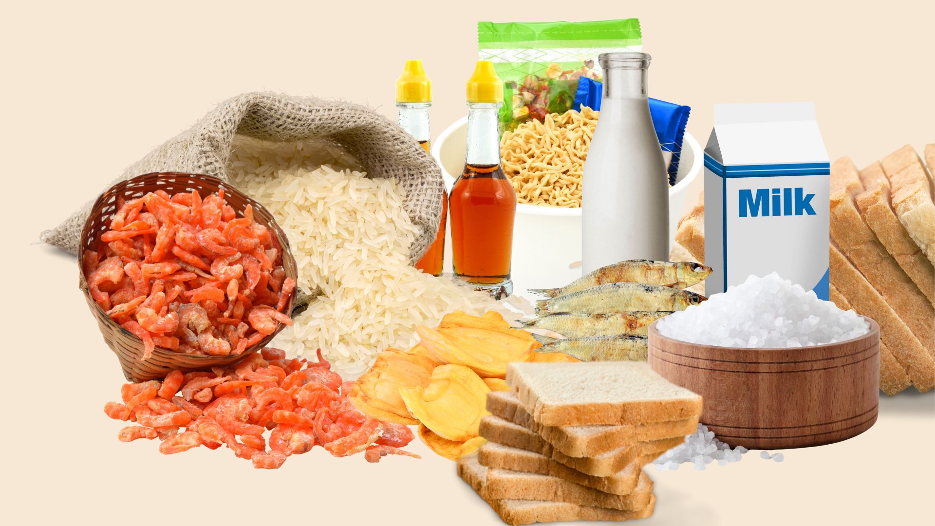 Gạo (10-15kg cho 3-4 người, dùng 7-10 ngày), cá khô, tôm khô, thịt khô, chà bông - nguồn đạm tốt, không cần bảo quản lạnh. Dự trữ thêm mì gói, miến, phở ăn liền, dù không nên dùng nhiều, nhưng trong tình huống khẩn cấp vẫn giúp chống đói nhanh.