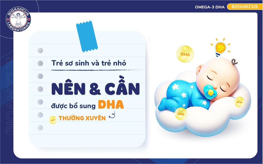 Trẻ sơ sinh và trẻ nhỏ NÊN và CẦN được bổ sung DHA thường xuyên để hỗ trợ sự phát triển toàn diện của não bộ, thị lực và hệ miễn dịch.