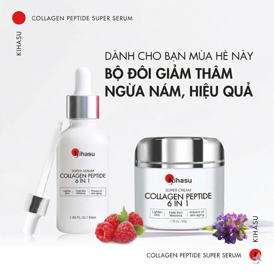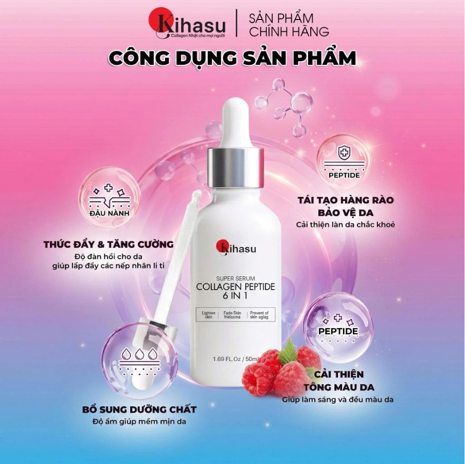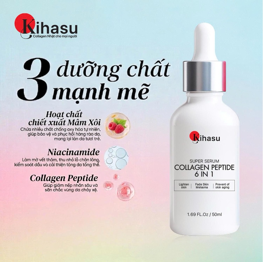 Bạn có thể tìm hiểu chi tiết hơn về bảng thành phần và đặt mua sản phẩm chính hãng tại đây: Serum Collagen Peptide Kihasu 6-in-1 Căng Bóng Trẻ Hóa Chuẩn Nhật.