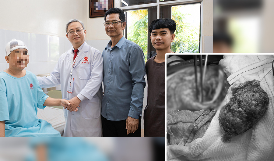 Trước đó, bệnh nhân N.T.P, 47 tuổi, sinh sống tại Campuchia, có tình trạng nhức đầu kéo dài, chóng mặt và buồn ói. Bệnh nhân tự mua thuốc uống trong thời gian dài, nhưng không thuyên giảm. Và khối u vì thế cứ lớn dần.
