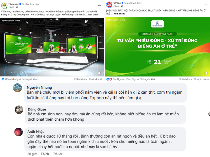 Hàng trăm bình luận và câu hỏi gửi về thể hiện sự đồng cảm, thấu hiểu và tinh thần học hỏi, lan tỏa thông điệp: “Hiểu đúng - Xử trí đúng biếng ăn ở trẻ”.