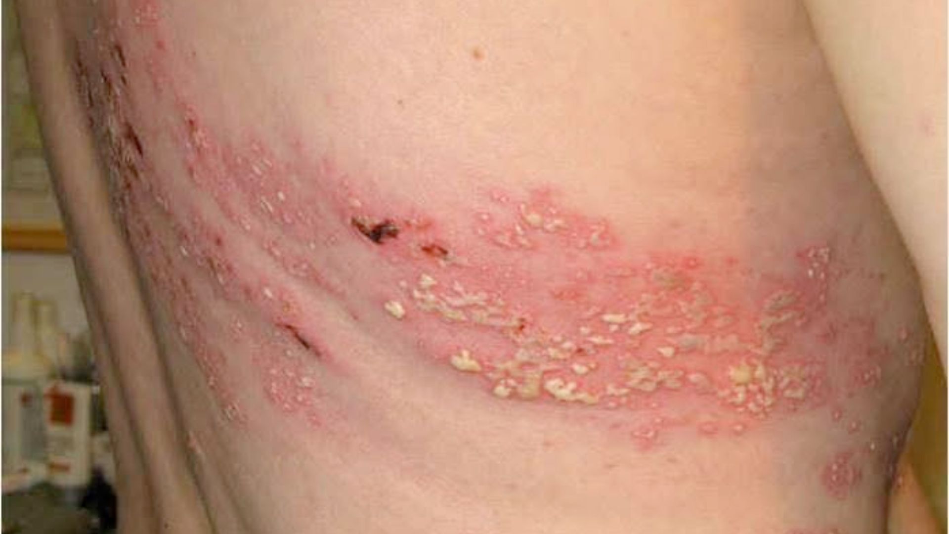 Nam bệnh nhân 54 tuổi, có tiền sử đái tháo đường type 2, vào Khoa Nội tiết - Đái tháo đường, Bệnh viện Bạch Mai trong tình trạng đau rát dữ dội vùng lưng, mạn sườn, kèm theo mụn nước mọc thành chùm dọc theo dây thần kinh liên sườn. Dù được điều trị sớm, bệnh nhân vẫn phải chịu đựng đau thần kinh kéo dài nhiều tuần, biến chứng thường gặp nhưng dễ bị bỏ qua ở người mắc bệnh mạn tính.