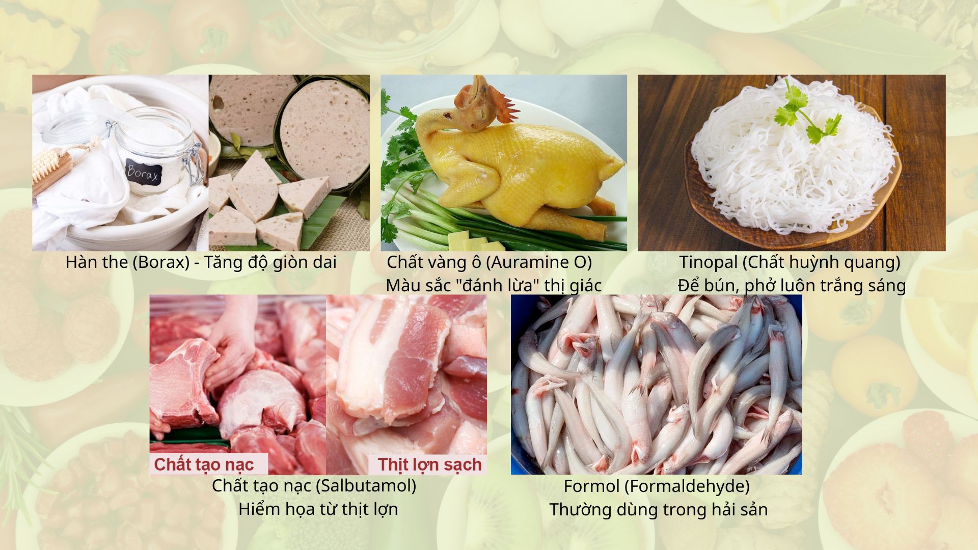 Chỉ vì mục tiêu lợi nhuận và đánh vào thị giác người mua, một số cơ sở sản xuất đã bất chấp rào cản đạo đức, biến thực phẩm kém chất lượng thành những món “tươi ngon, bắt mắt”. Hiểu rõ các chất cấm thường gặp và cách nhận biết không còn là chuyện kiến thức, mà là kỹ năng sinh tồn để bảo vệ sức khỏe cho cả gia đình.