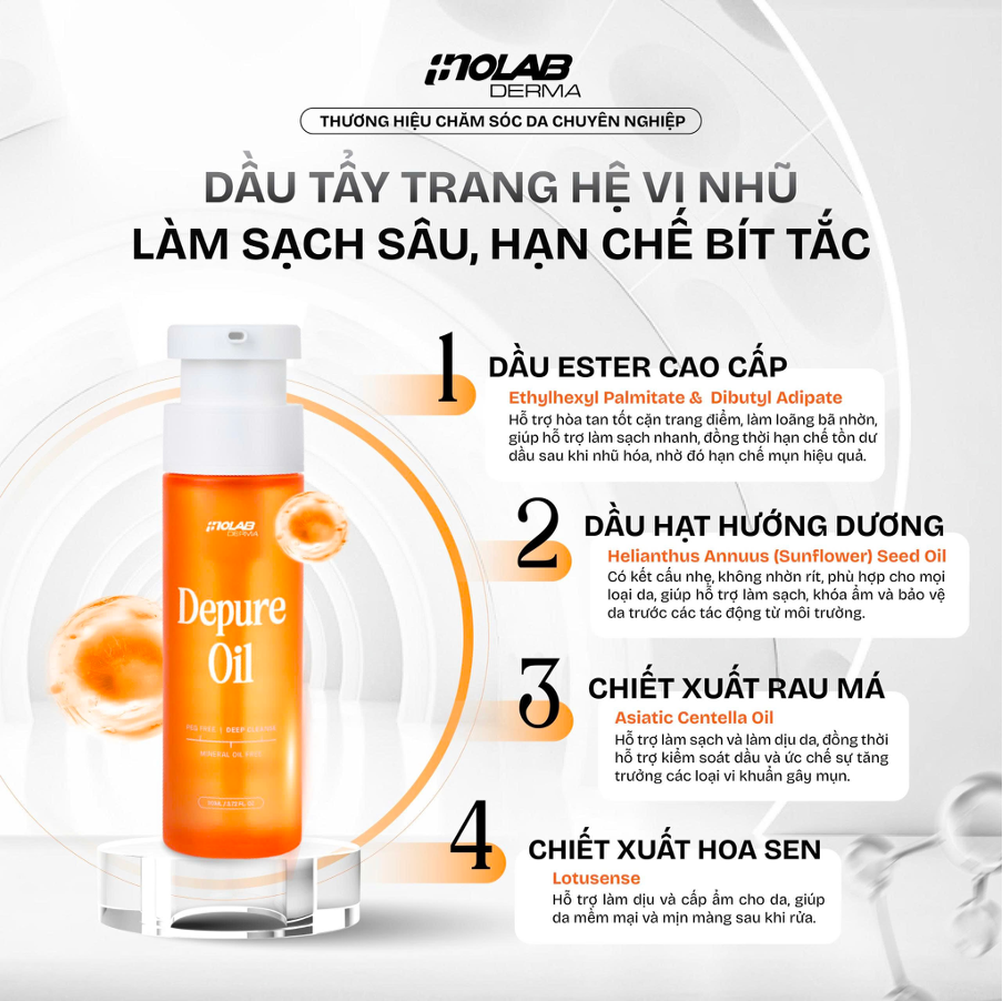 Dầu tẩy trang Inolab Derma Depure Oil giải pháp tiên tiến đóng gói cặn bẩn dầu thừa sạch da hiệu quả