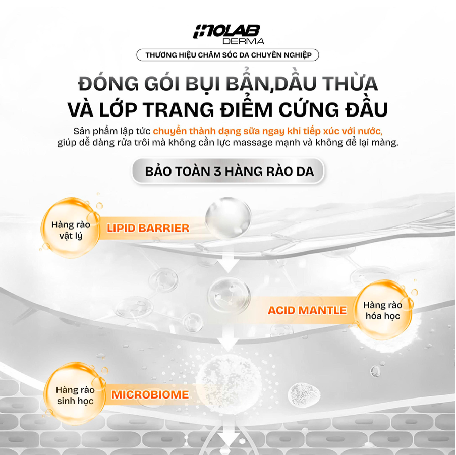 - Hỗ trợ bảo toàn 3 hàng rào da: Hàng rào sinh học (Microbiome), Hàng rào hóa học (Acid mantle), Hàng rào vật lý (Lipid Barrier).
