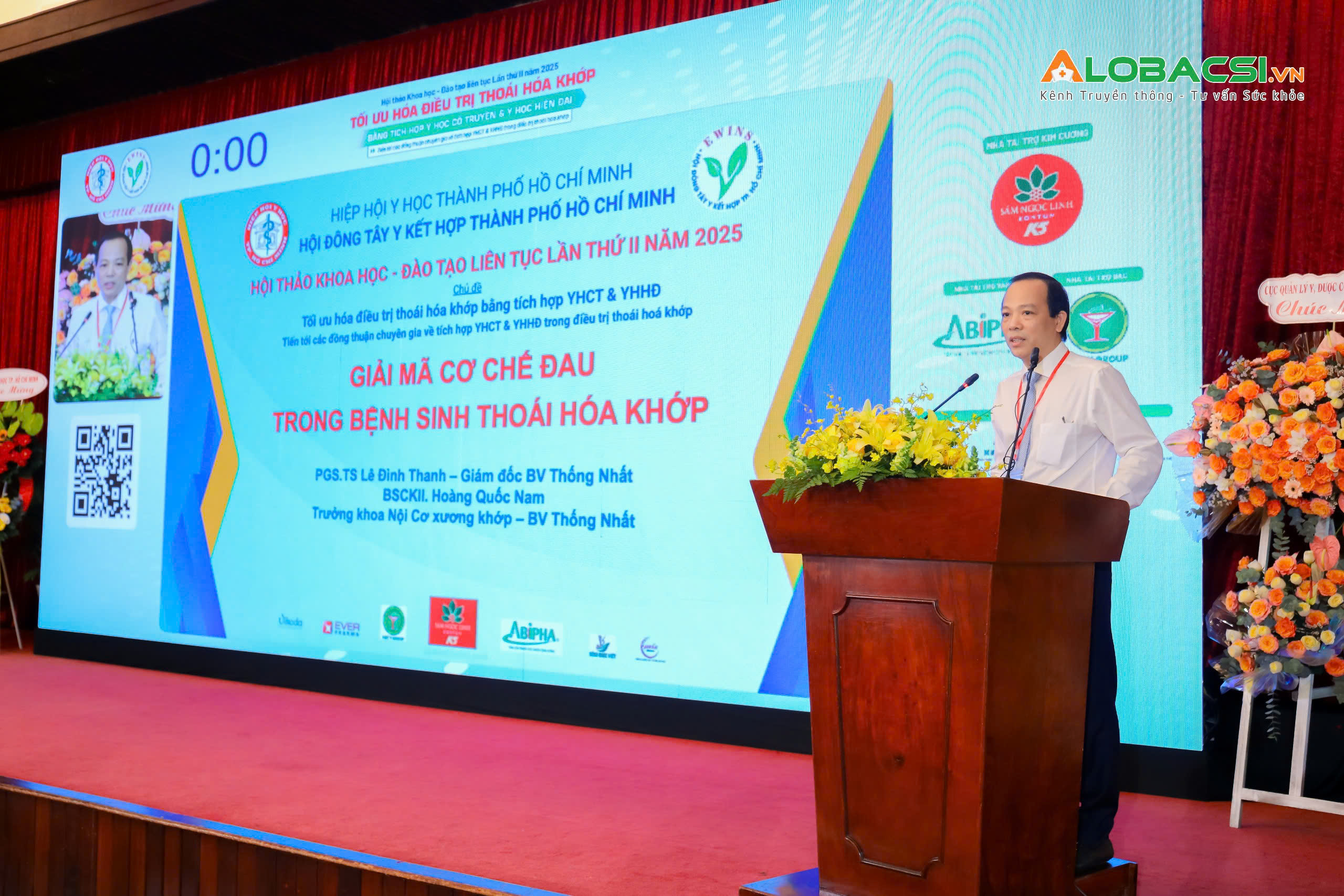 Tại Hội thảo Khoa học 2025 của Hội Đông - Tây y kết hợp TPHCM, BS.CK2 Hoàng Quốc Nam đã có phần báo cáo tổng quan về cơ chế và quản lý cơn đau trong bệnh lý thoái hóa khớp, đặc biệt tập trung vào việc giải mã cơ chế đau phức tạp của bệnh này. Chuyên gia còn cập nhật các phương pháp điều trị giảm đau hiện tại, nhấn mạnh sự cần thiết của việc điều trị toàn diện cả tổn thương khớp và các yếu tố thần kinh.