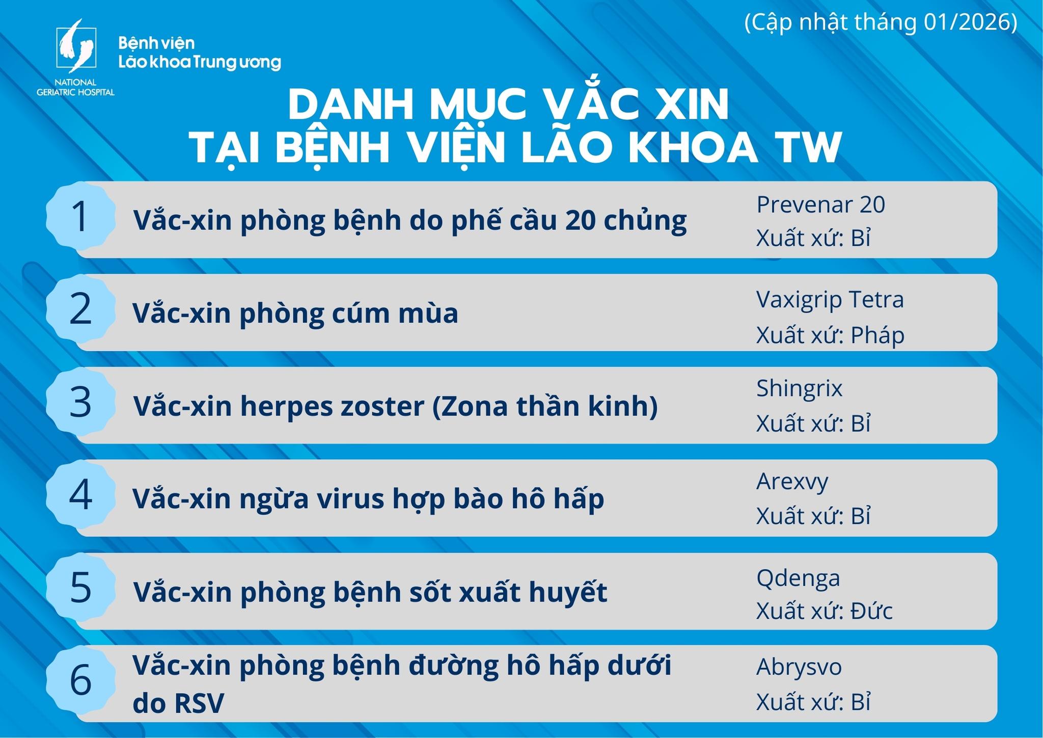 Bệnh viện Lão khoa Trung ương đang có những vắc xin nào?