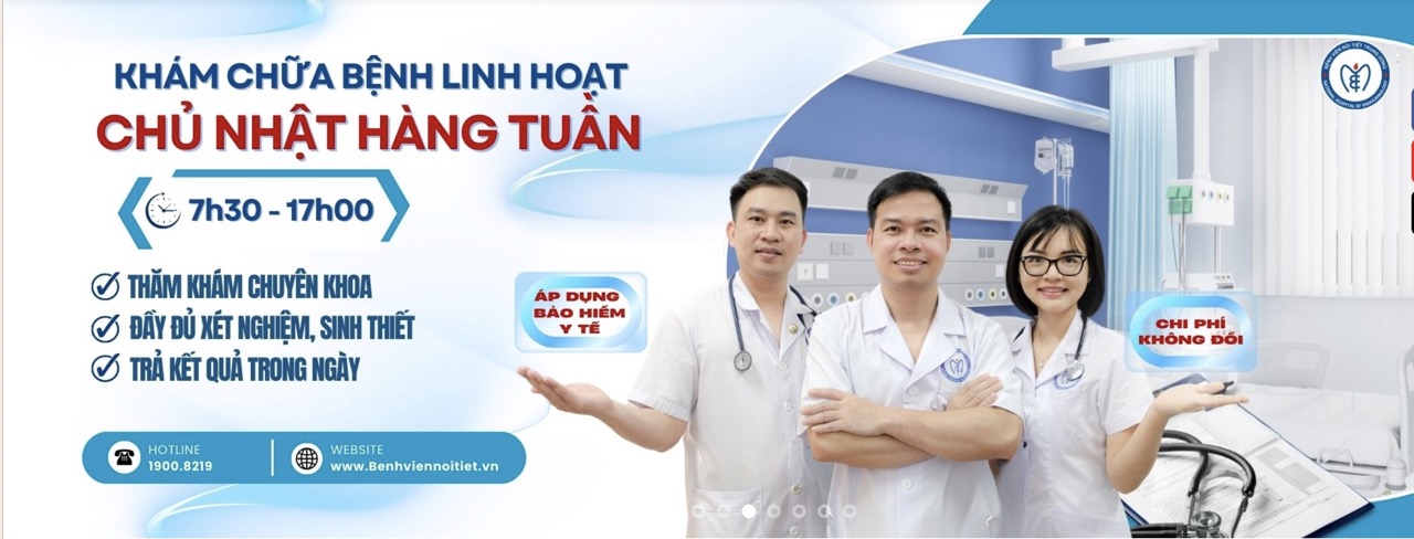 Hiện nay, Bệnh viện Nội tiết Trung ương có triển khai khám chữa bệnh vào Chủ nhật hàng tuần (từ 7h30 đến 17h00) nhằm tạo điều kiện thuận lợi cho người bệnh không thể đi khám trong giờ hành chính.