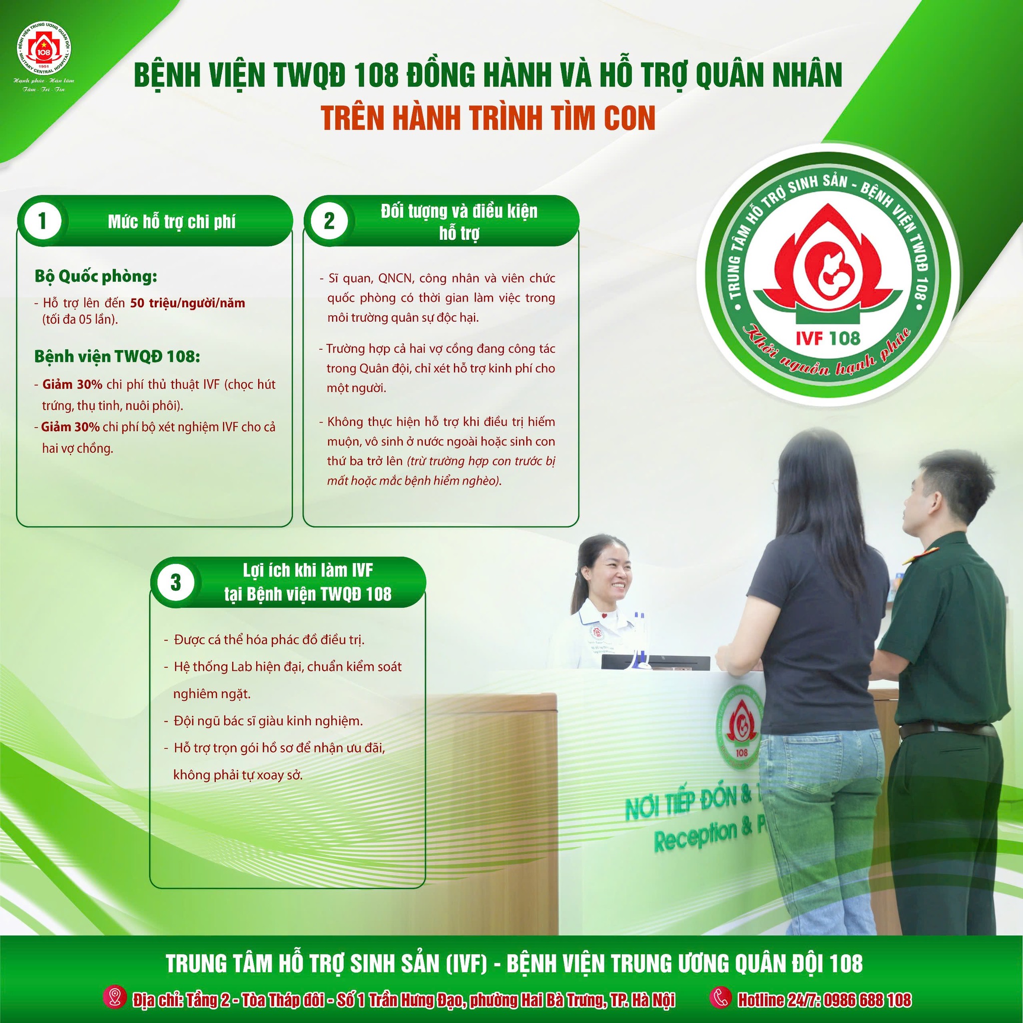 Bệnh viện Trung ương Quân đội 108 hỗ trợ chi phí làm IVF cho quân nhân như thế nào?