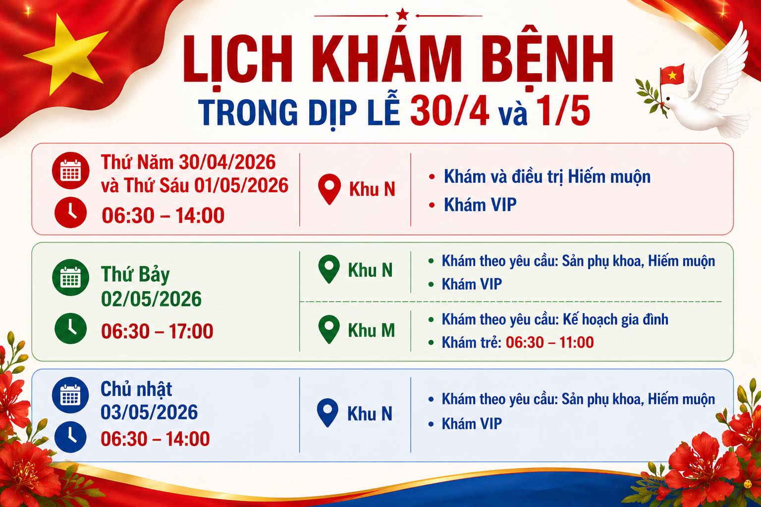Dịp lễ 30/4 - 1/5 em muốn tranh thủ đi khám phụ khoa tại Bệnh viện Từ Dũ thì bệnh viện có làm việc không ạ? (Hoa Nguyễn - TPHCM)