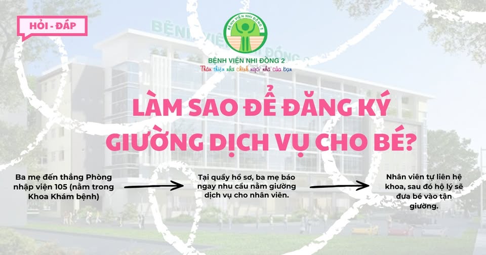 Chào AloBacsi, con tôi đang điều trị ngoại trú nhưng bác sĩ vừa chỉ định nhập viện để theo dõi thêm. Do bé còn nhỏ và gia đình muốn có không gian yên tĩnh để tiện chăm sóc, tôi muốn đăng ký cho bé nằm giường dịch vụ. Tuy nhiên, tôi nghe nói giường dịch vụ tại Bệnh viện Nhi đồng 2 thường rất nhanh hết.