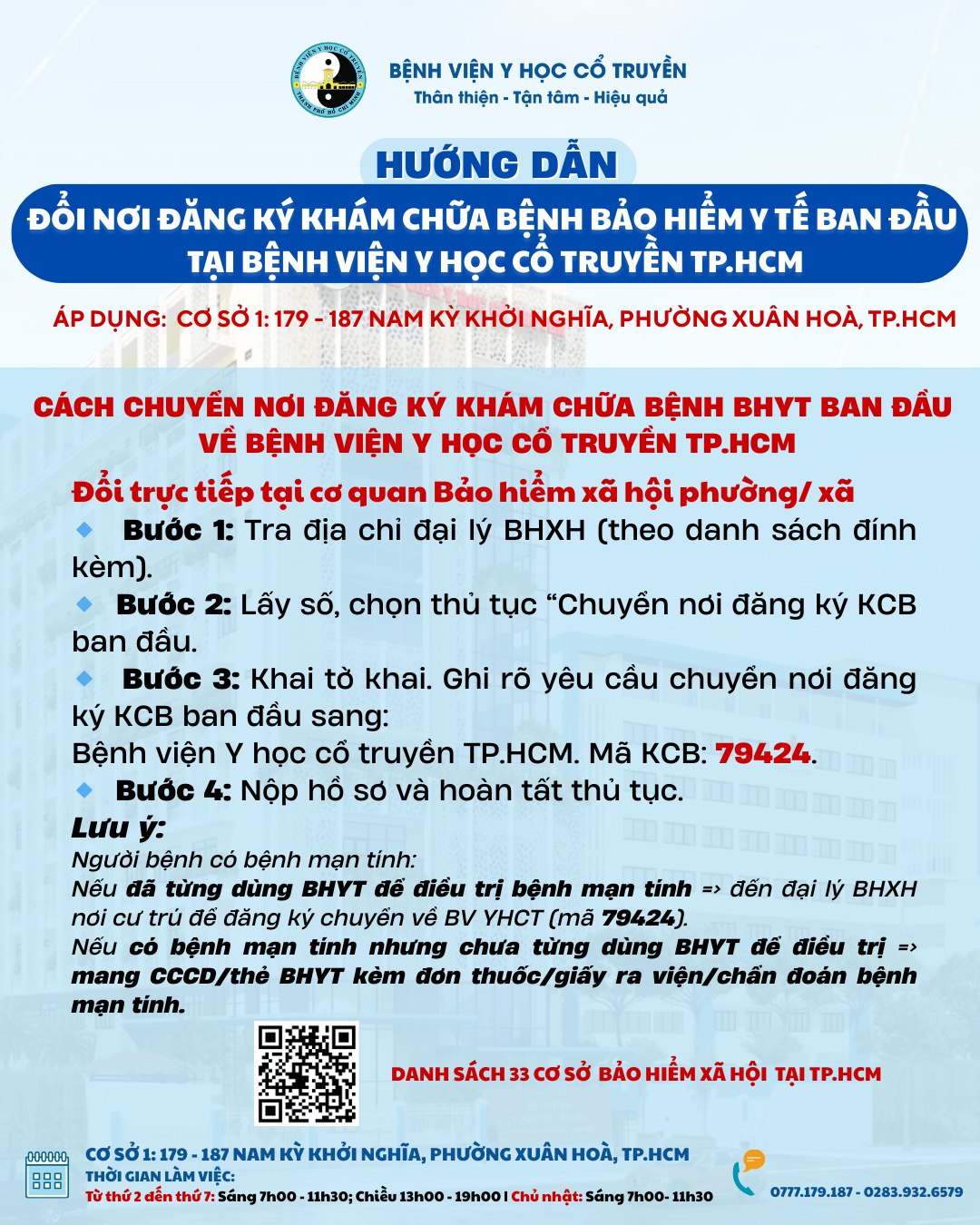 Nếu bạn đang điều trị bệnh mạn tính, cần theo dõi lâu dài bằng Y học cổ truyền, việc chuyển nơi đăng ký KCB BHYT ban đầu về Bệnh viện Y học Cổ truyền TP.HCM sẽ giúp thuận tiện tái khám, giảm chi phí và đảm bảo tính liên tục trong điều trị. Trường hợp còn băn khoăn về hồ sơ cụ thể, bạn nên liên hệ trực tiếp cơ quan BHXH địa phương để được hướng dẫn chi tiết hơn.