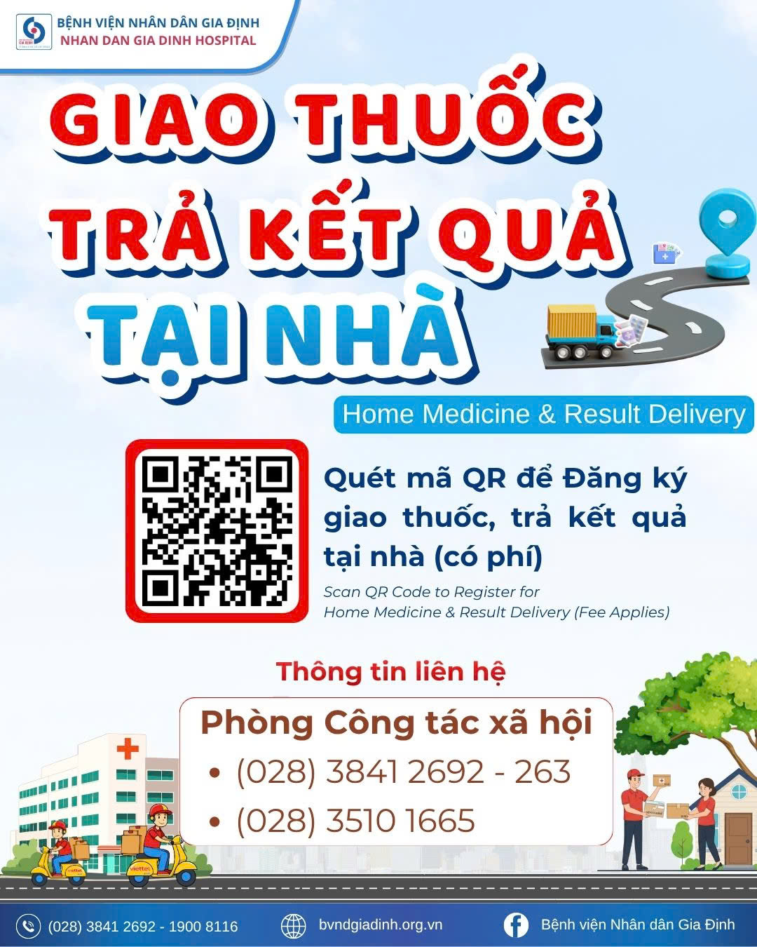 Chào AloBacsi, tôi đang điều trị ngoại trú tại Bệnh viện Nhân dân Gia Định và mỗi lần tái khám phải chờ lấy thuốc khá lâu. Tôi nghe nói bệnh viện có dịch vụ giao thuốc và trả kết quả tận nhà, nhưng chưa rõ cách đăng ký, thời gian giao, và phạm vi áp dụng thế nào.