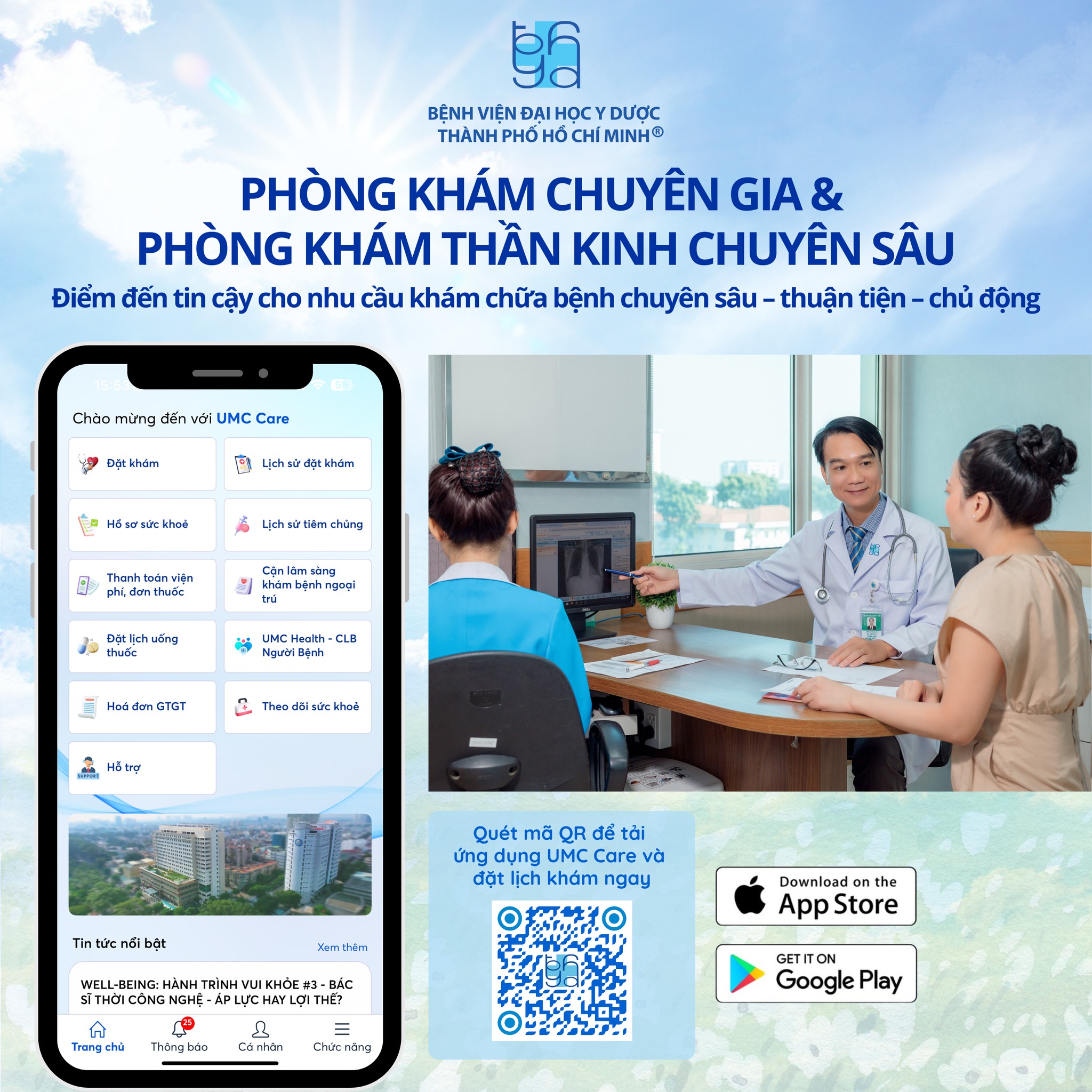 Bạn có thể đặt lịch trực tuyến qua ứng dụng UMC Care của BV ĐHYD để chọn bác sĩ, khung giờ và thanh toán trước, tránh phải chờ đợi. Ứng dụng cũng giúp bạn theo dõi kết quả cận lâm sàng, toa thuốc và lịch sử khám rất thuận tiện.