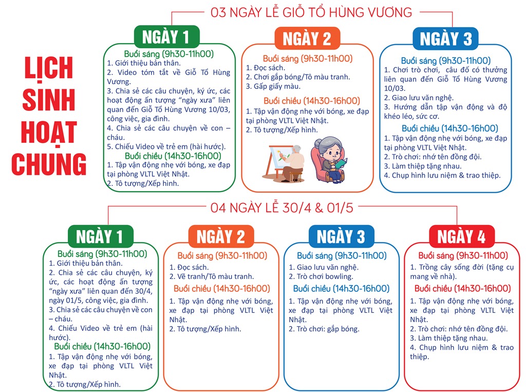Trong các dịp nghỉ lễ dài ngày như Giỗ Tổ Hùng Vương & 30/4 – 01/5, nhiều gia đình có kế hoạch du lịch, về quê hoặc nghỉ ngơi sau thời gian làm việc bận rộn. Tuy nhiên, một nỗi băn khoăn chung là làm sao chăm sóc tốt nhất cho ông bà, cha mẹ cao tuổi khi con cháu đều đi vắng?