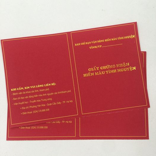 Hiện nay, giấy chứng nhận hiến máu không được cấp lại nếu thất lạc. Do đó, bạn nên giữ thật cẩn thận những giấy còn lại.