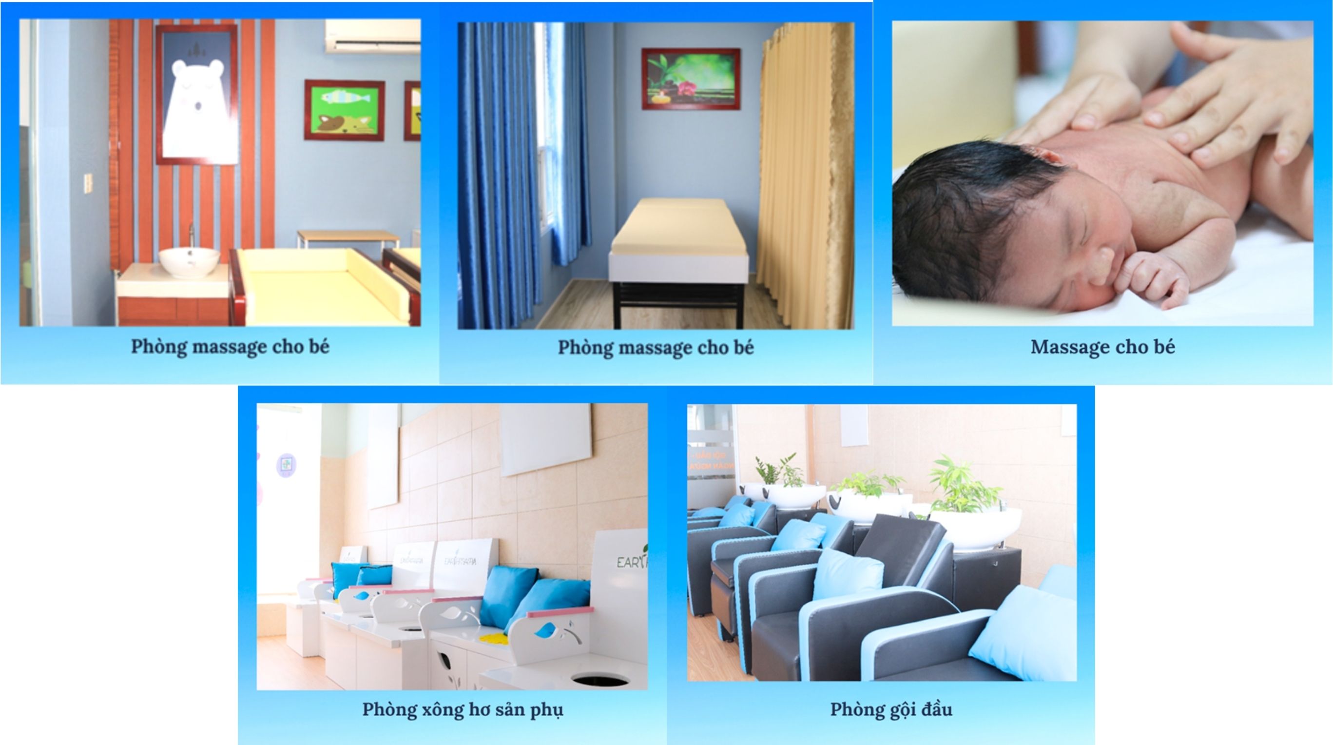 - Dành cho Mẹ: Xông hơ sau sinh giúp nhanh hồi phục, xoa bóp kích thích tạo sữa chuyên sâu để mẹ đủ sữa cho bé ngay từ những ngày đầu.