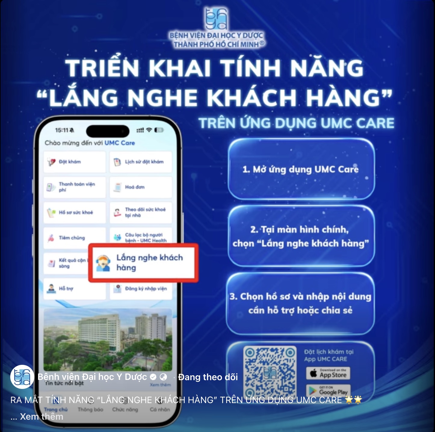 Góp ý dịch vụ của BV ĐHYD TPHCM qua ứng dụng UMC Care