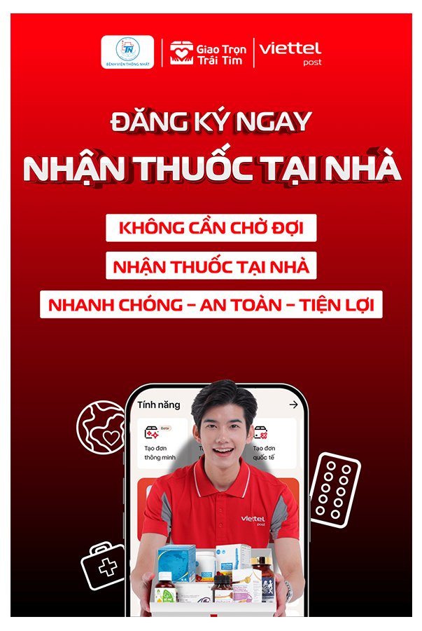 Từ ngày 16/9/2025, Bệnh viện Thống Nhất phối hợp cùng Viettel Post chính thức triển khai dịch vụ giao thuốc tận nhà nhằm hỗ trợ người bệnh tiết kiệm thời gian và công sức.