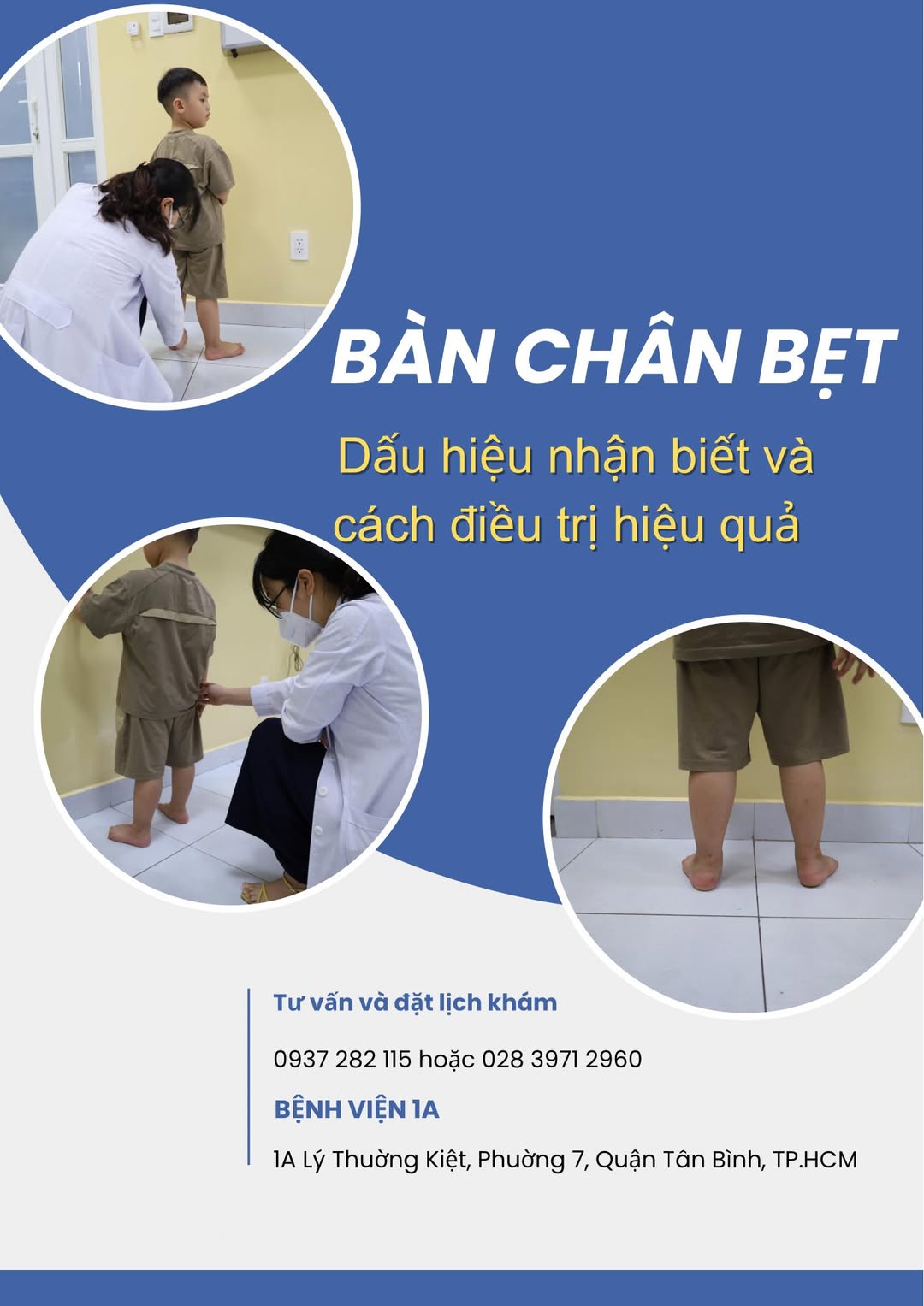 Với nghi ngờ trẻ bị bàn chân bẹt, việc đưa bé đi khám sớm là rất cần thiết để được chẩn đoán chính xác và can thiệp kịp thời. Hiện tại, Bệnh viện 1A là một trong những đơn vị chuyên sâu về chỉnh hình và phục hồi chức năng, đặc biệt có quy trình chẩn đoán bàn chân bẹt bài bản cho trẻ.
