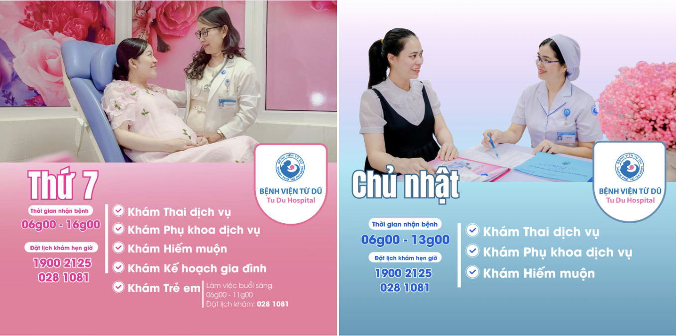Đặc biệt, theo thông tin từ Bệnh viện Từ Dũ, chi phí khám dịch vụ vào Chủ nhật không phát sinh thêm phụ phí ngoài giờ, vẫn áp dụng mức giá như các ngày trong tuần.