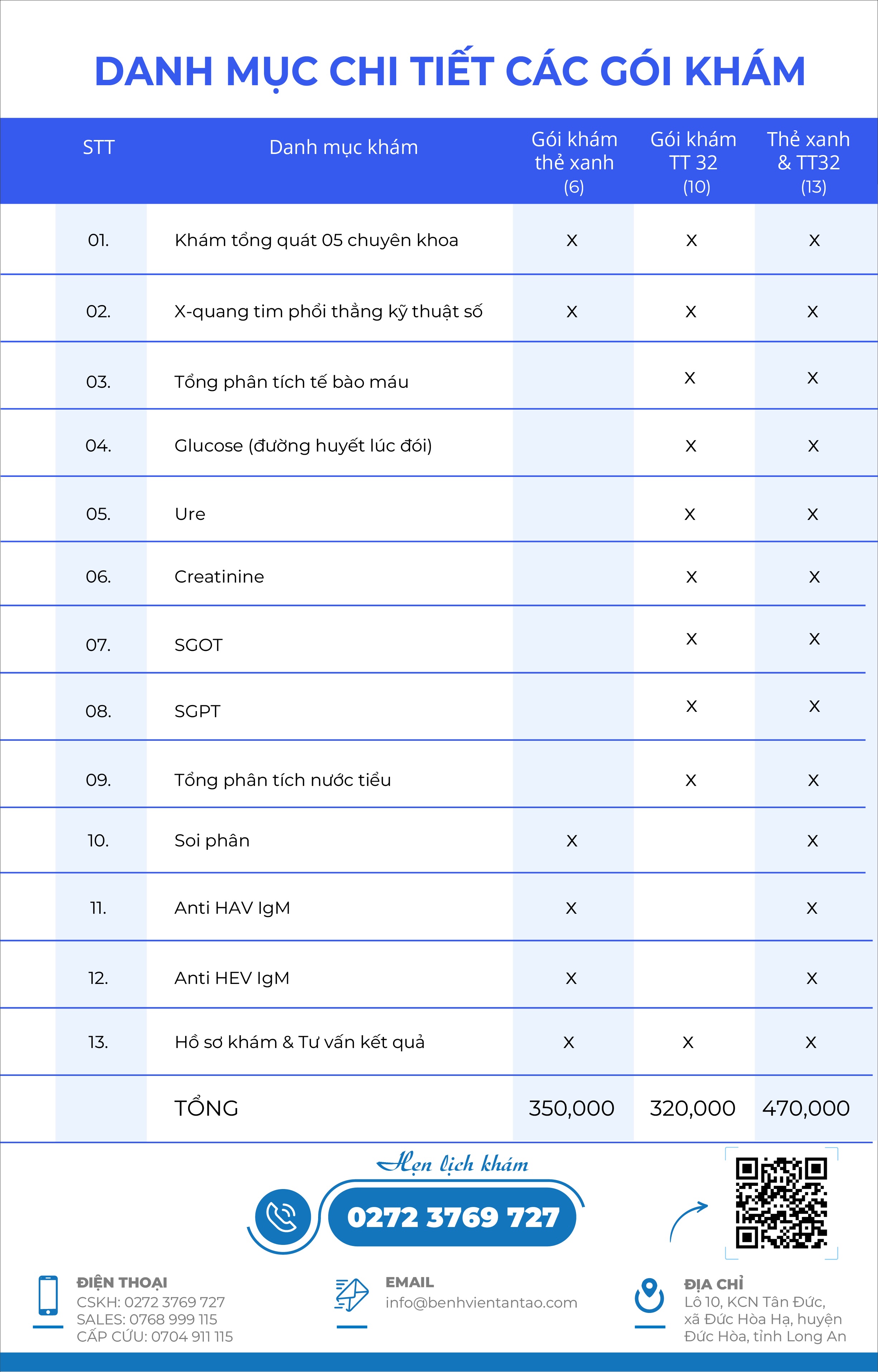 - Khách hàng doanh nghiệp vui lòng xem chi tiết các gói khám hoặc liên hệ để có báo giá ưu đãi.